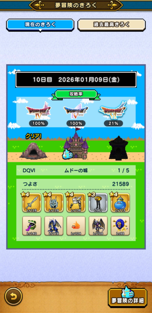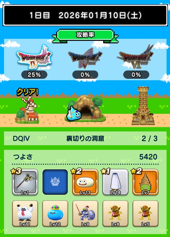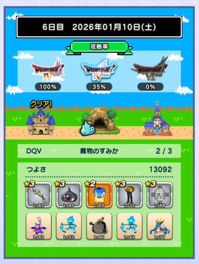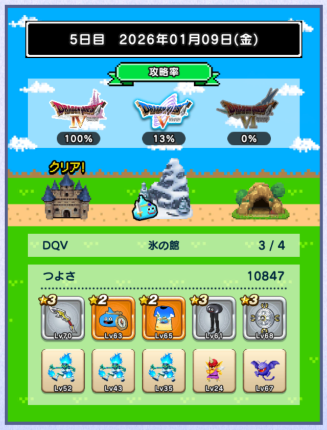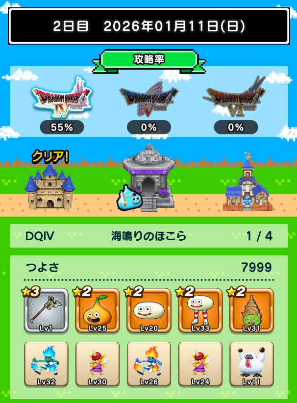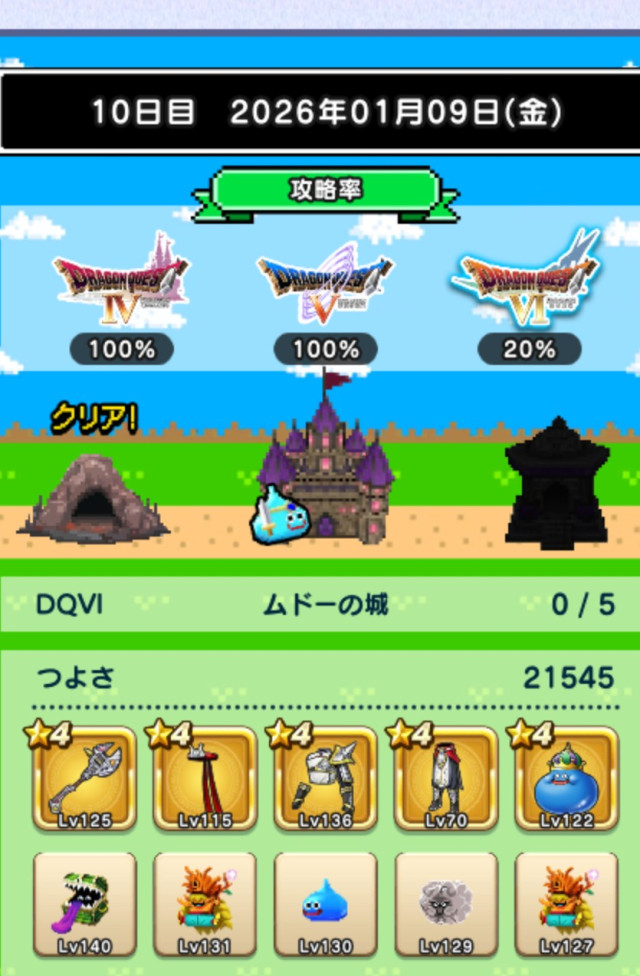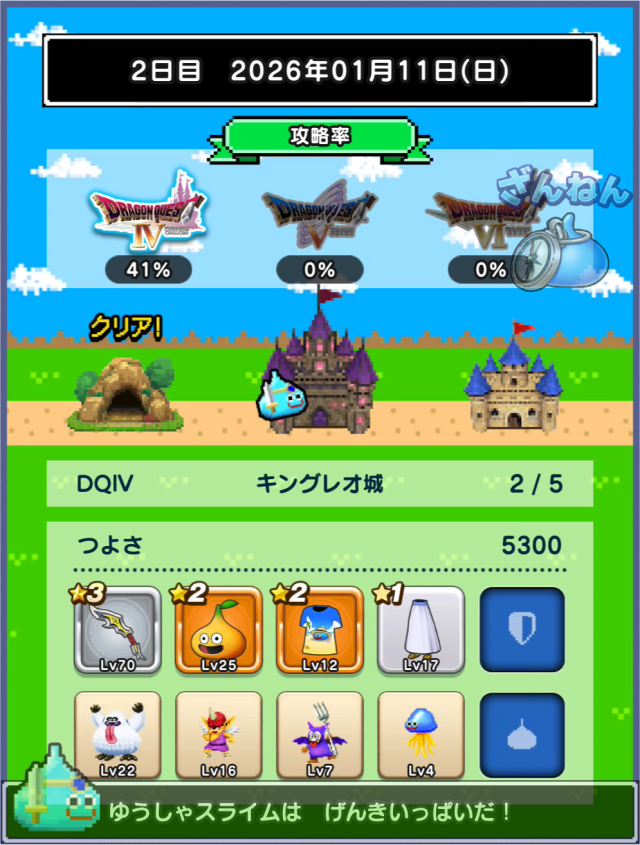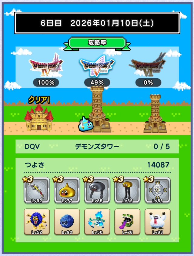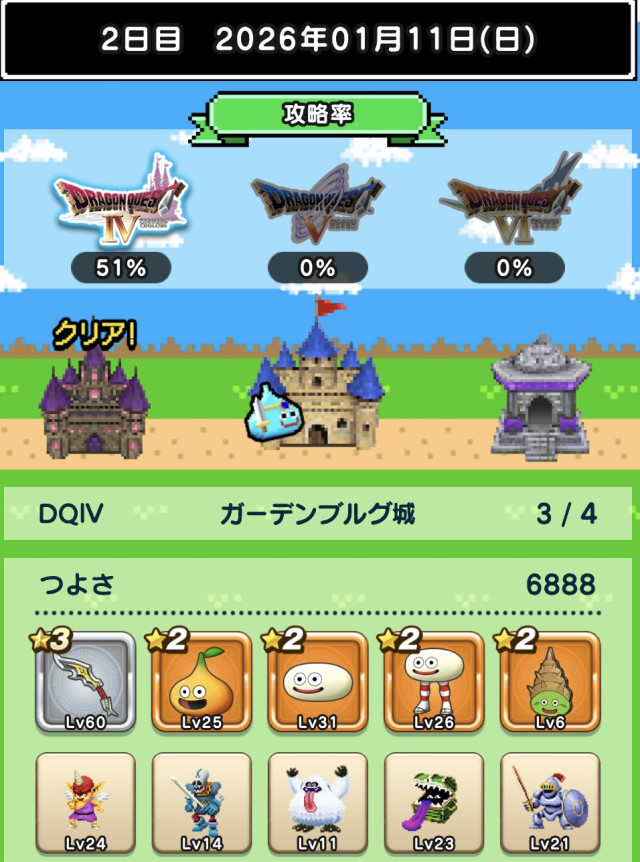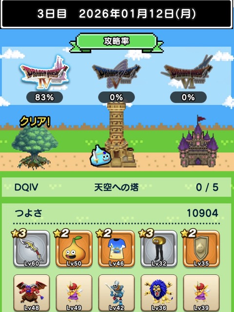 つよさが上がらずデスキャッスル各+1ターン程。討伐数39、49とか微妙に足りないのが解消されるとも少し進めそうですね。