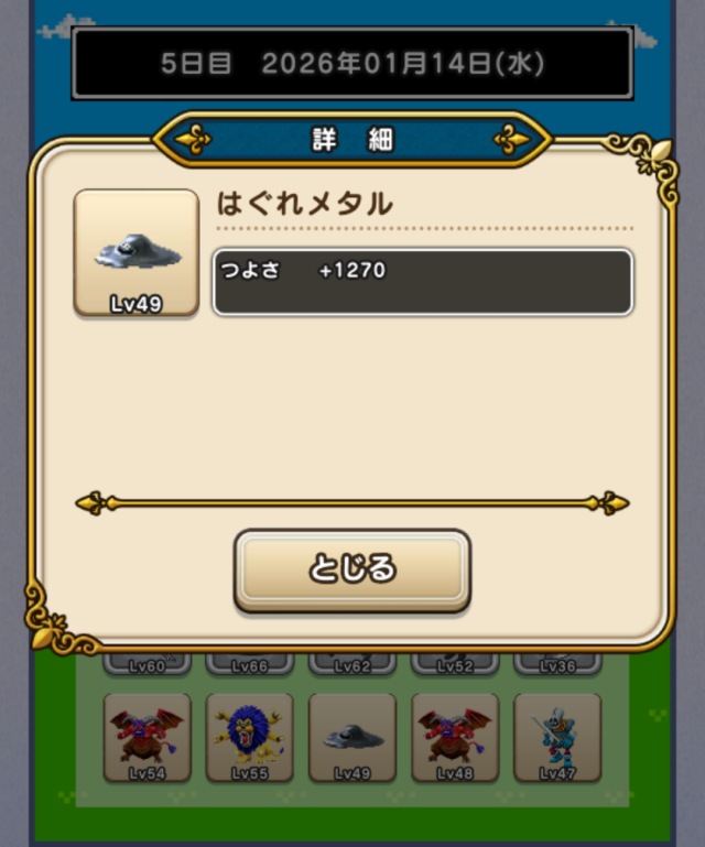 がいこつLv53撃破(4)→ミミックLv54撃破(2)→