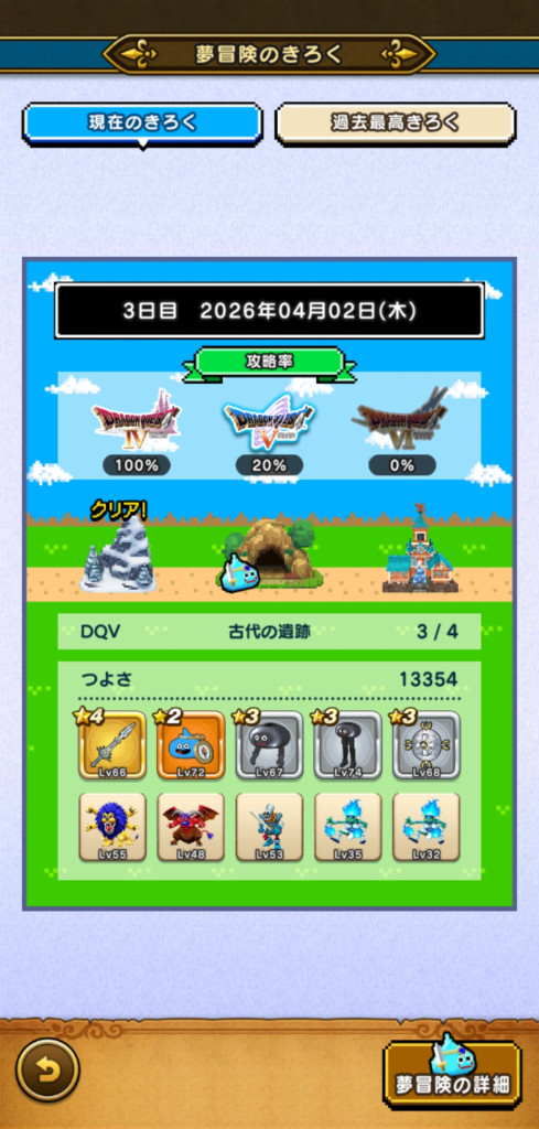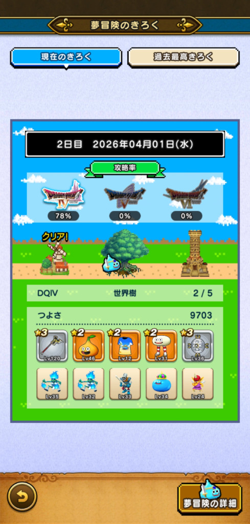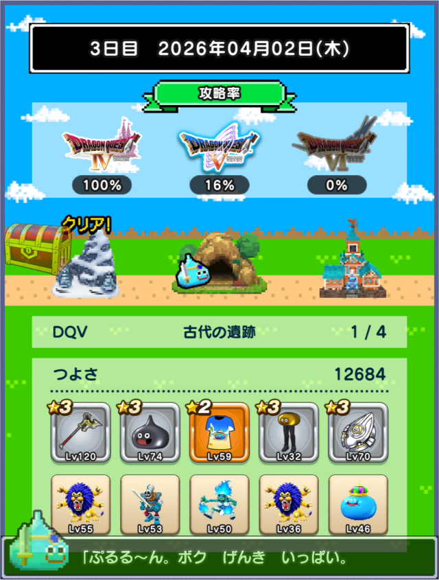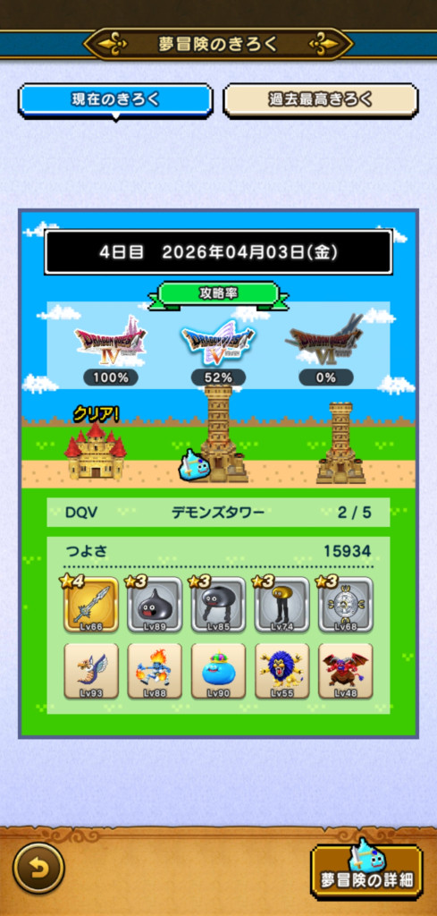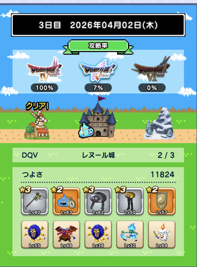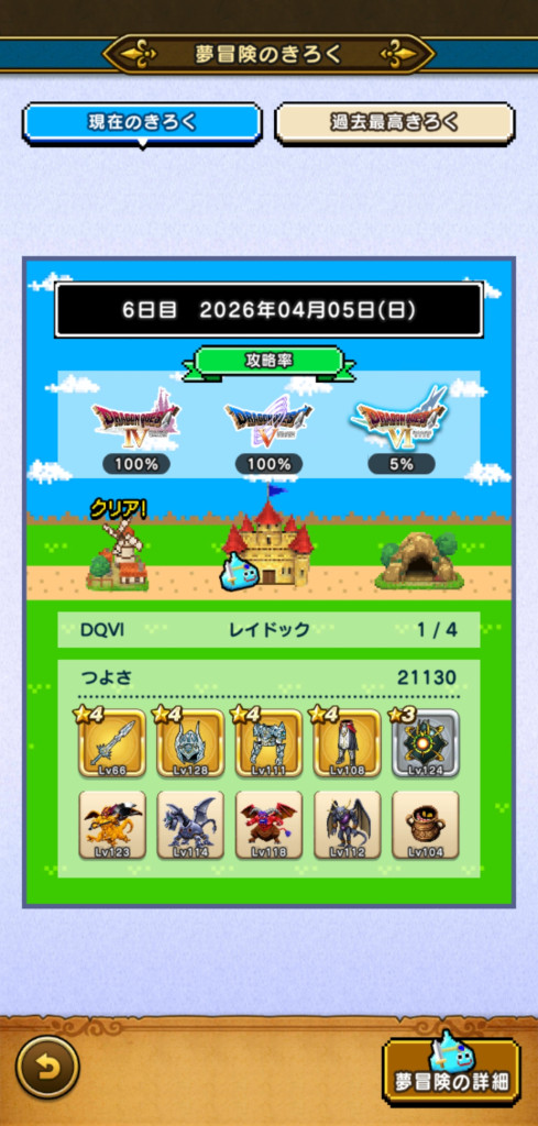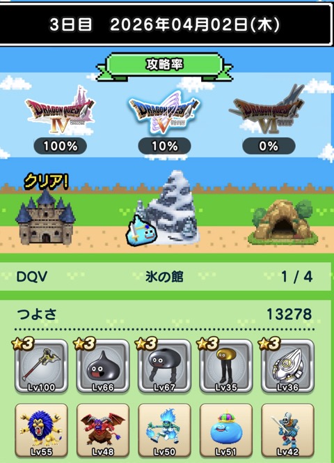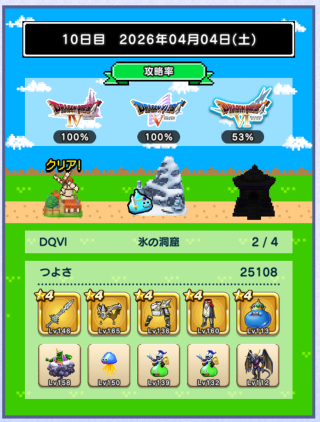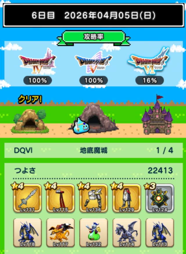 未だ未だ6日制覇には届かず。図鑑恩恵(ミルドラ10匹、ブラックドラゴン等各15匹)も欲しいです。
