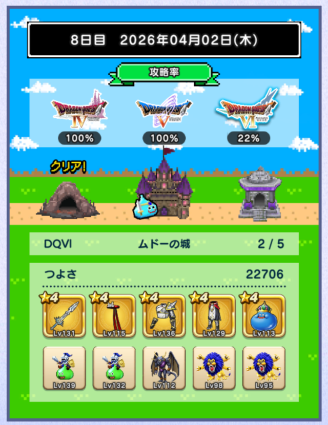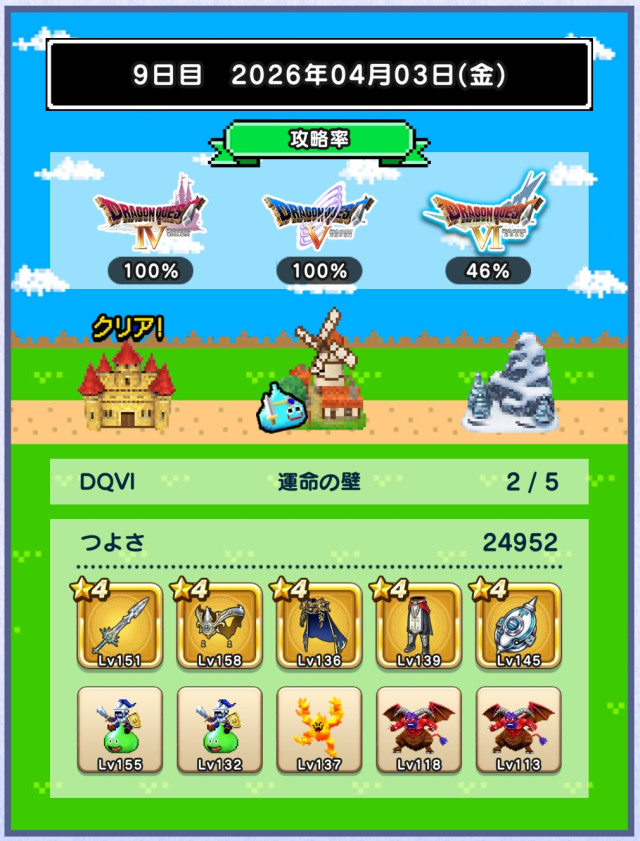 FoeDeEAさん、taku999さん 6日目DQ5制覇おめでとうございます。