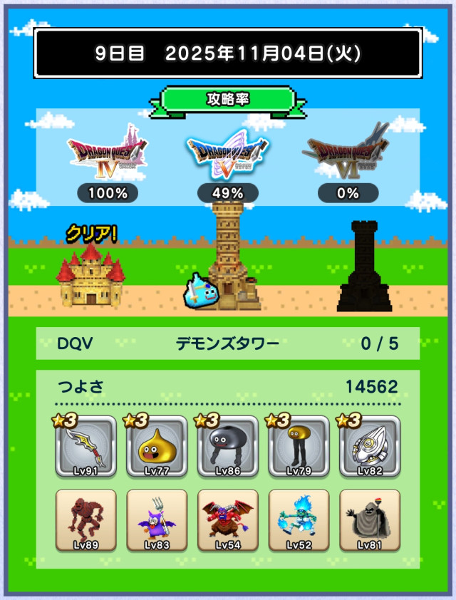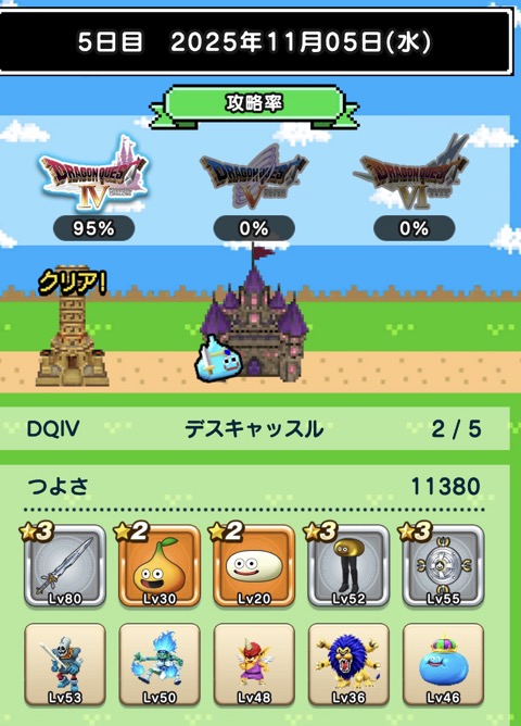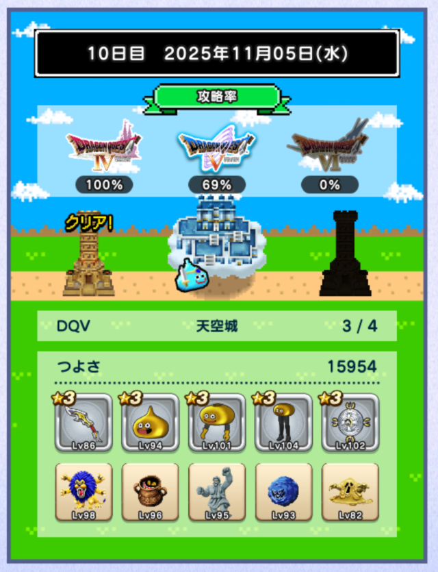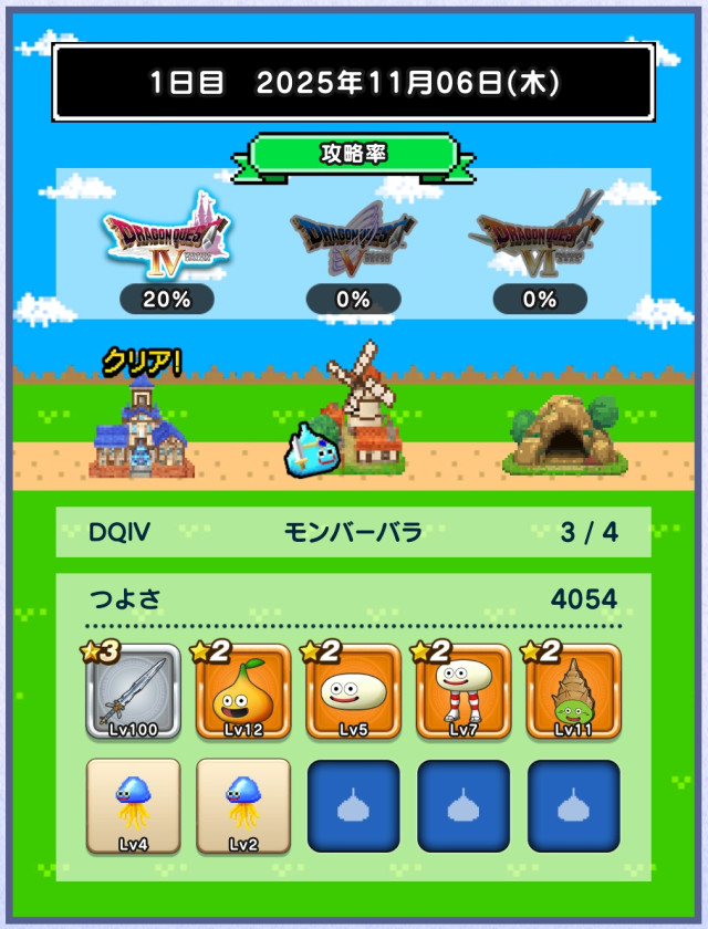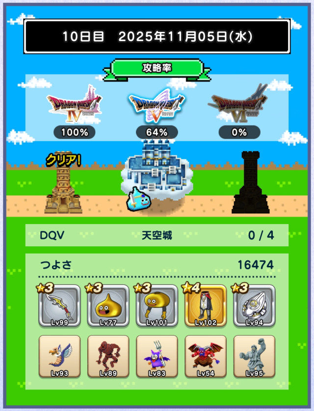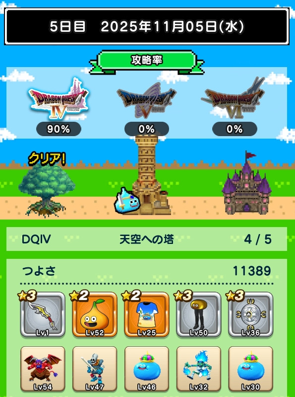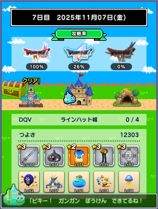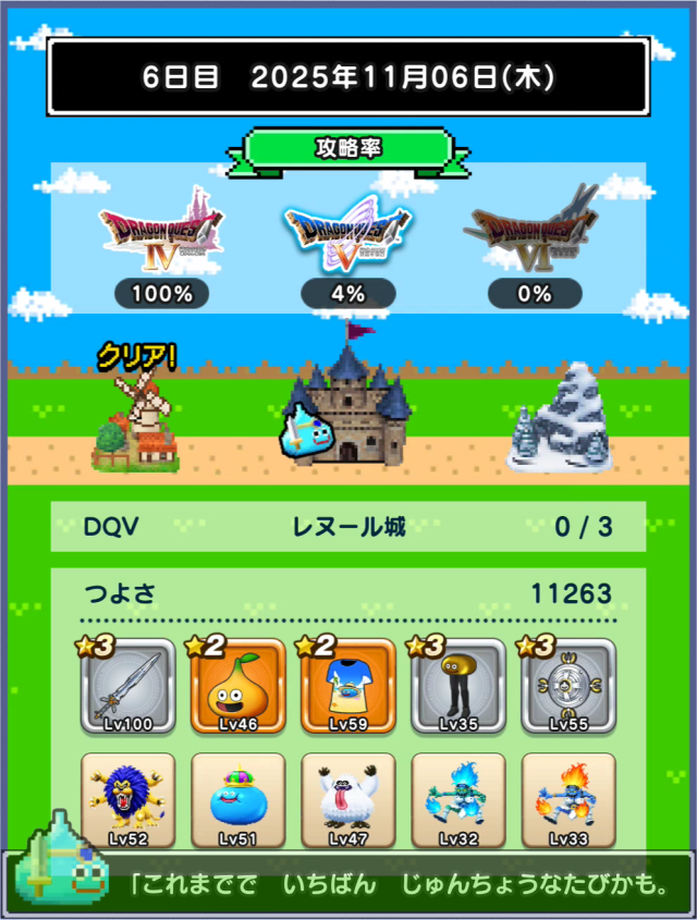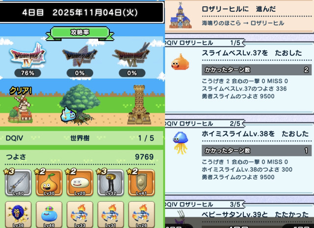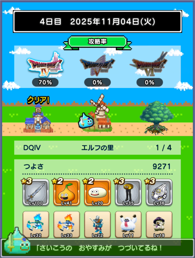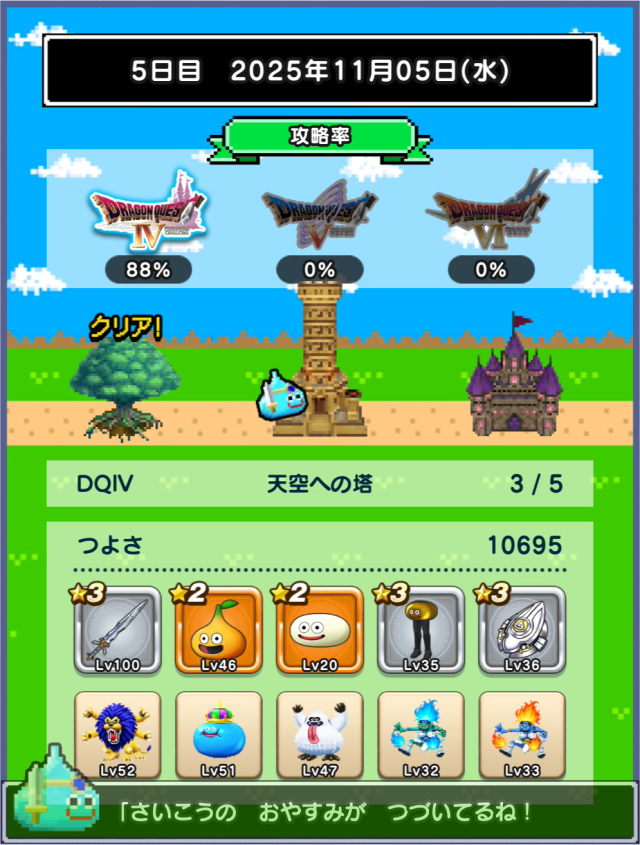 進捗はこれまでで一番よいので、うちの勇者スライムなりに奮闘しているみたい。ただ🍊スライムヘッドのような、特定の装備の頻繁な差分更新は止めてほしい。