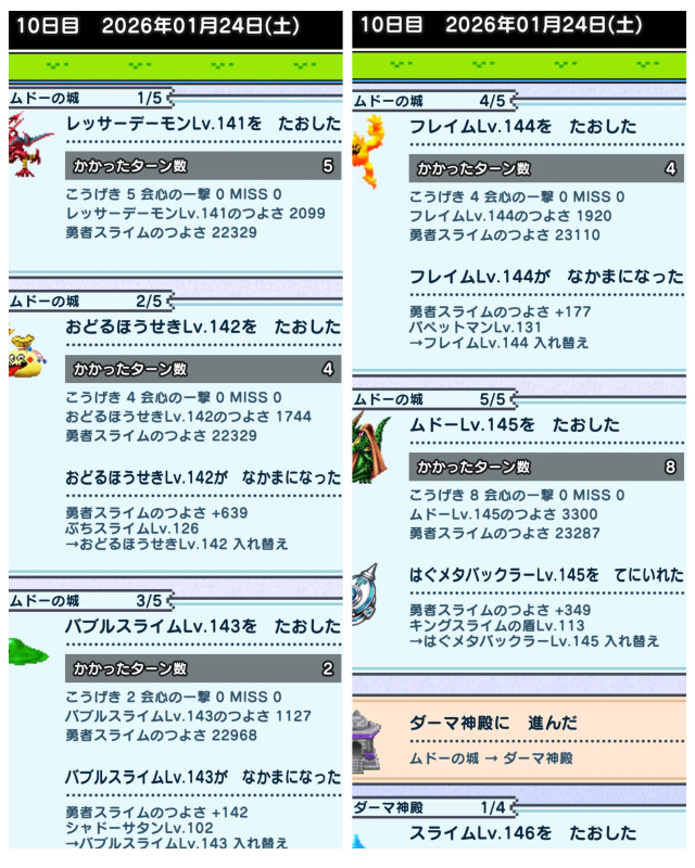あくまのツボLv99撃破(5)でトーテムボディ差分更新+48→