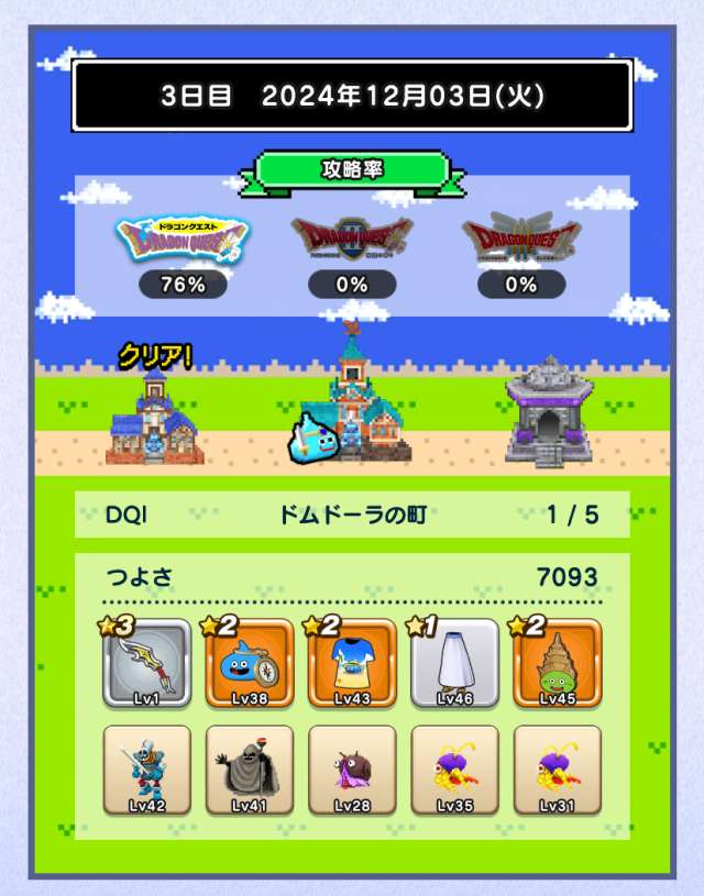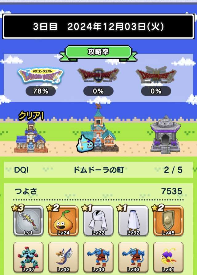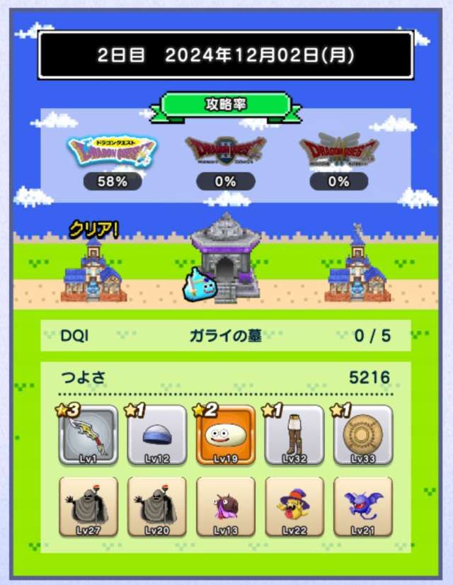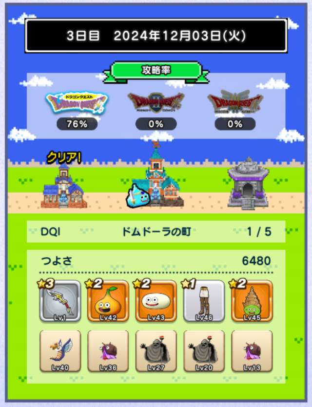 うわぁああ、ドムドーラで仲モンが埋まってないなんて。スライムベス来たら、4つ並んで消えてしまいそう。って、ぷよぷよか。