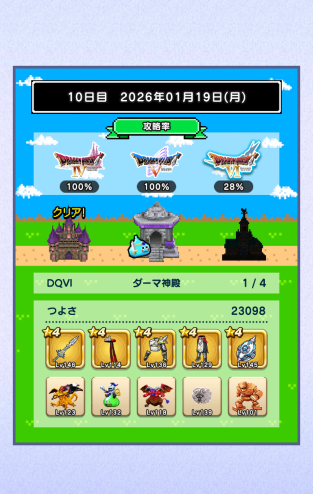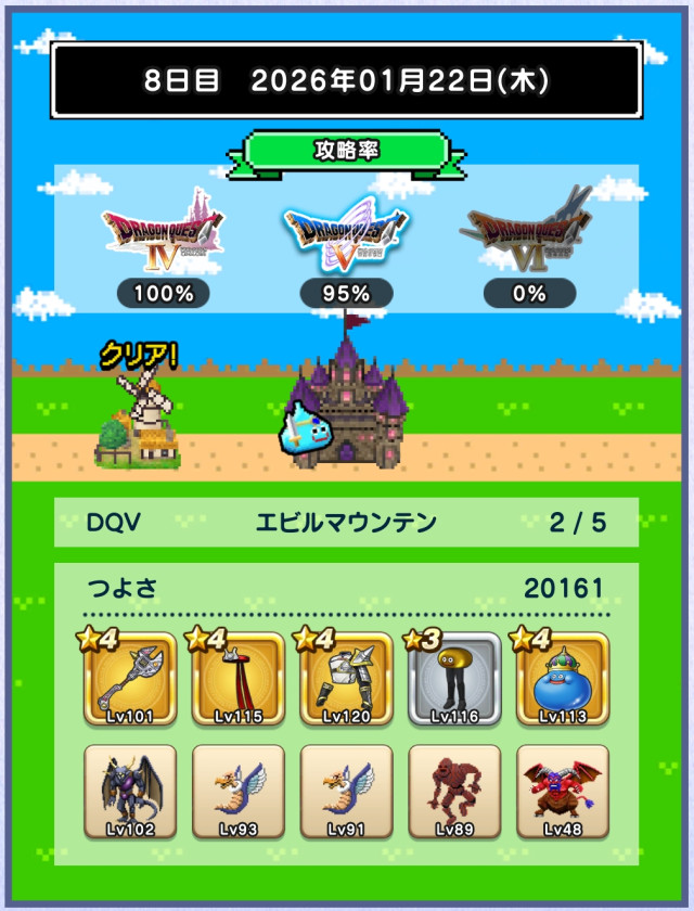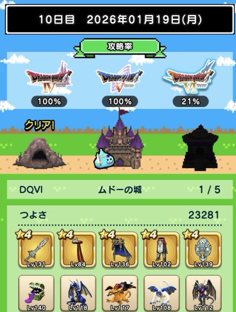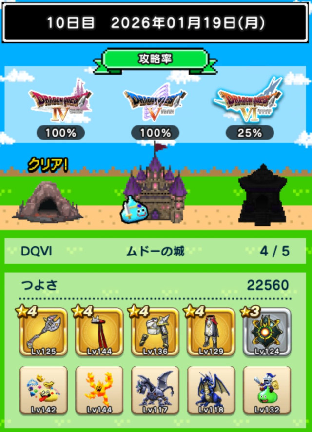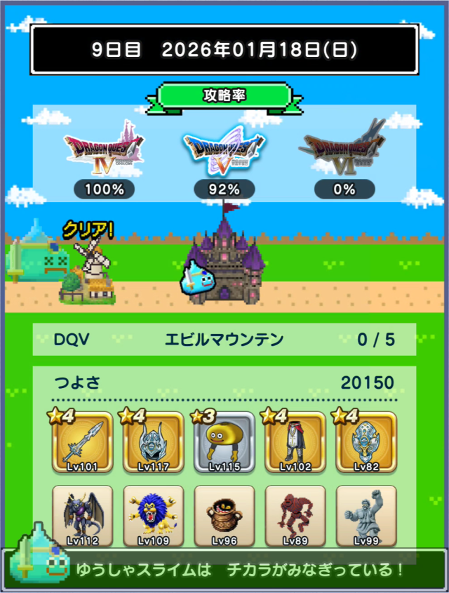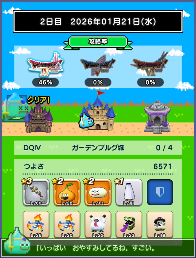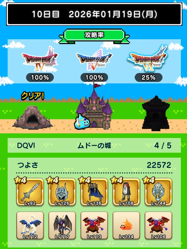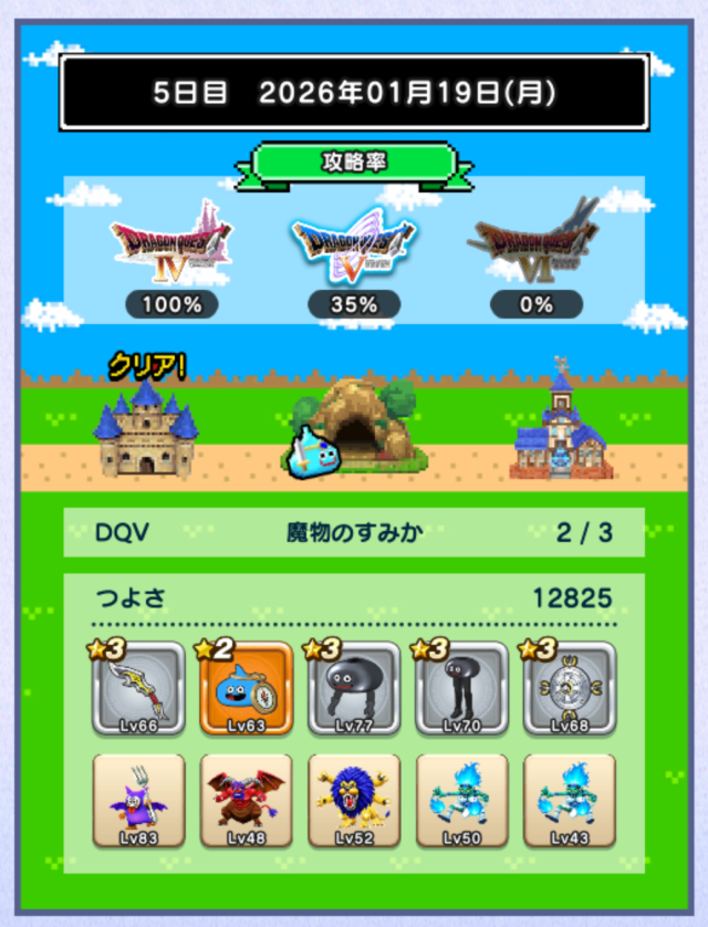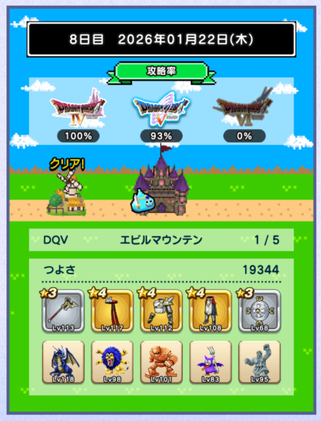 図鑑はミルドラースが銀。DQⅥに入り、ぶちスライムが仲間になるくらいなので、仲間のつよさ不足は結構深刻な模様。