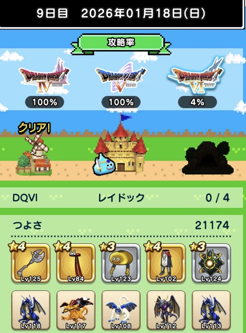 レイドック3/4、2/4で終わった過去2周を1日近く進んでる。