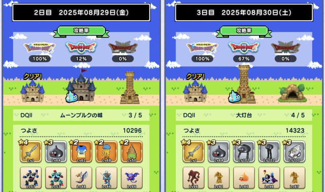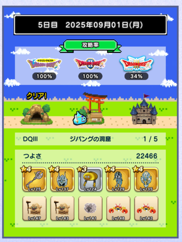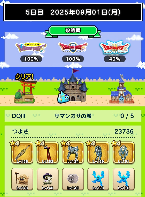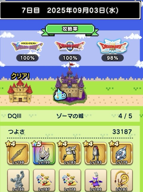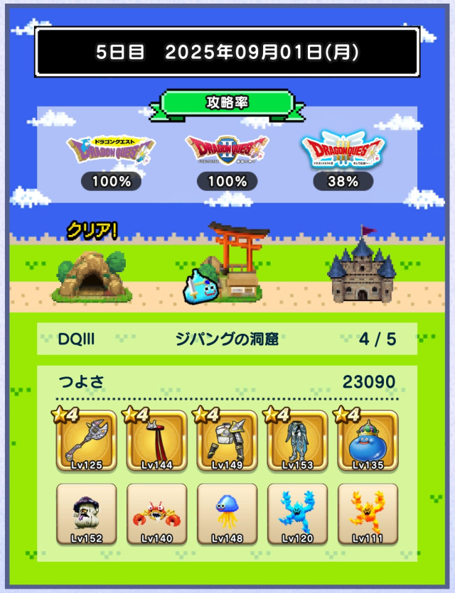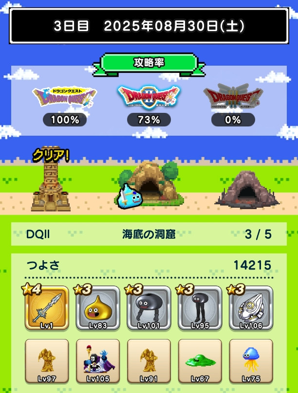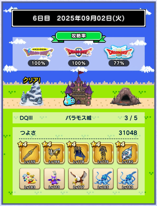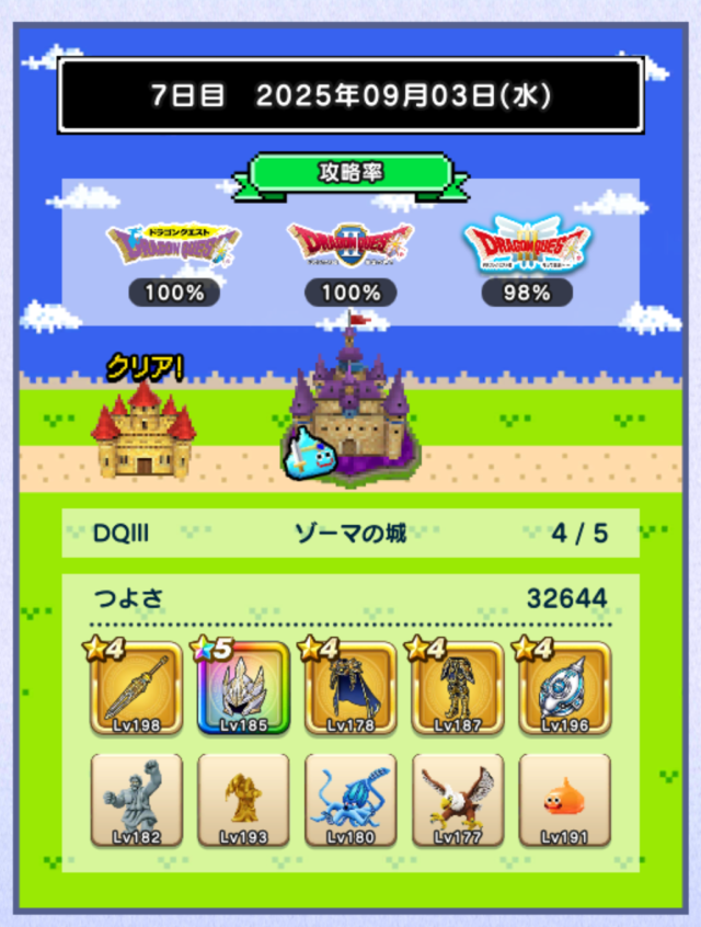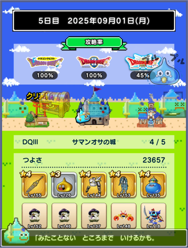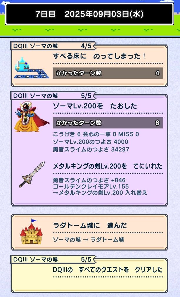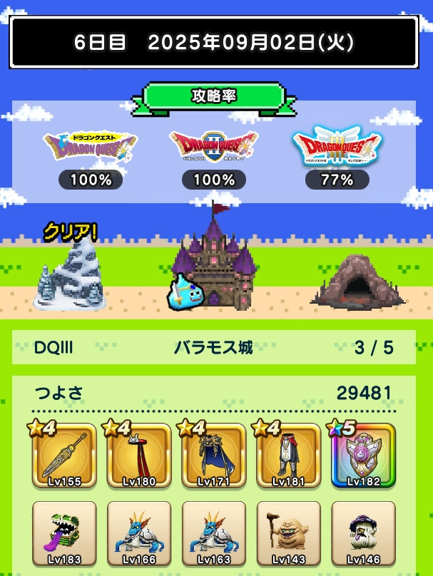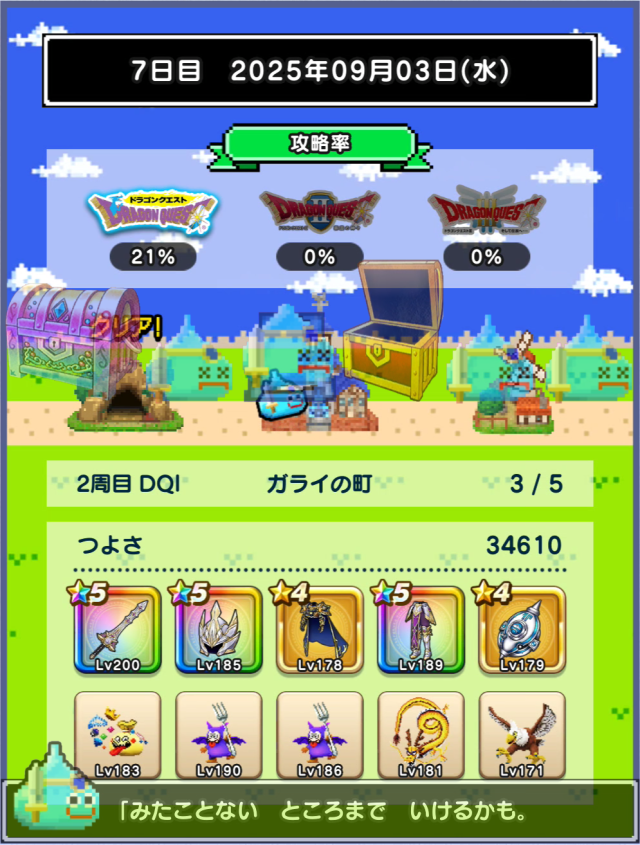 バブルスライムの図鑑更新は2周後くらい、ゴーストは3周後くらいかなあと思いつつ、明日の進捗見込みを確認。今回もトラップ回避が多くないとDQⅡクリアまでは届かなさそうで、前回、前々回並み。明日はキラーマシンとシルバーデビルが多く出てくれればよいです。