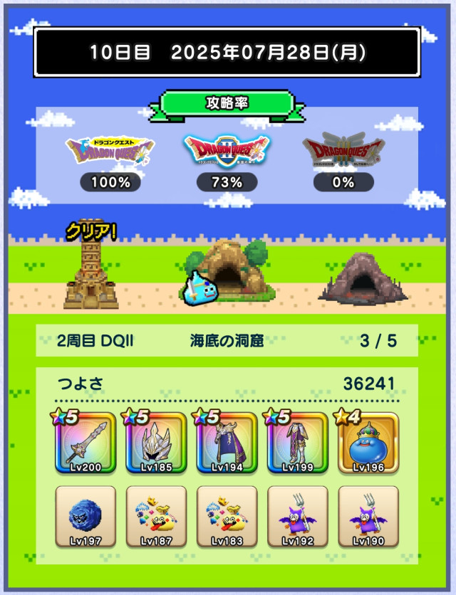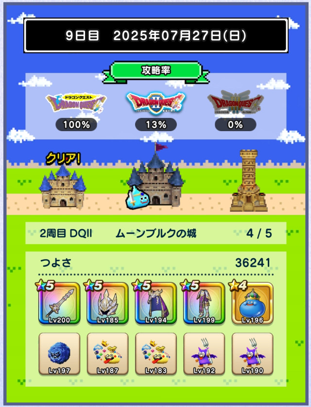 ゴーストとバブルスライムの討伐数がずっと1体差で前後したり並んだりのデッドヒート(おおげさ