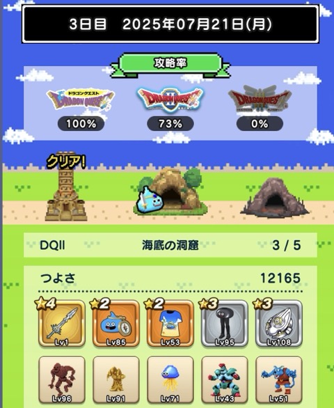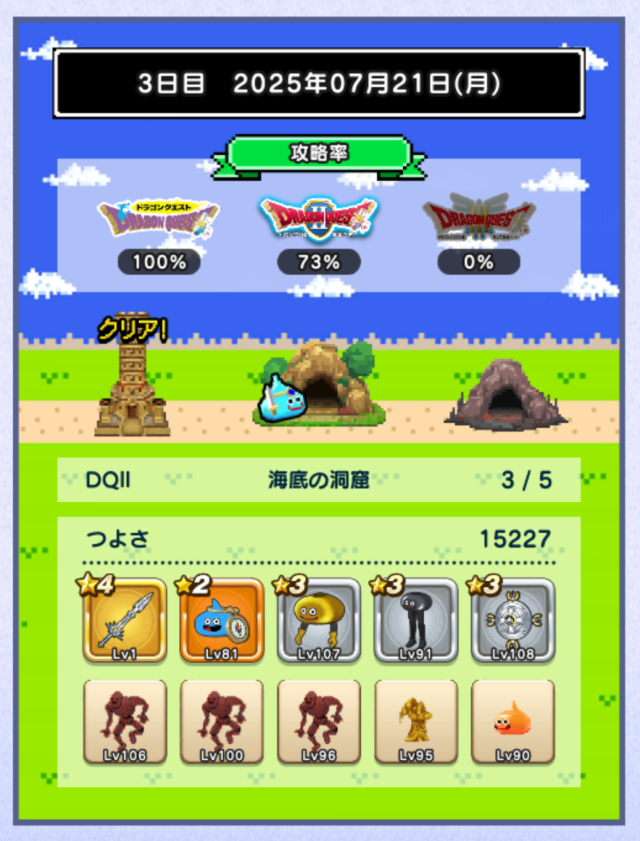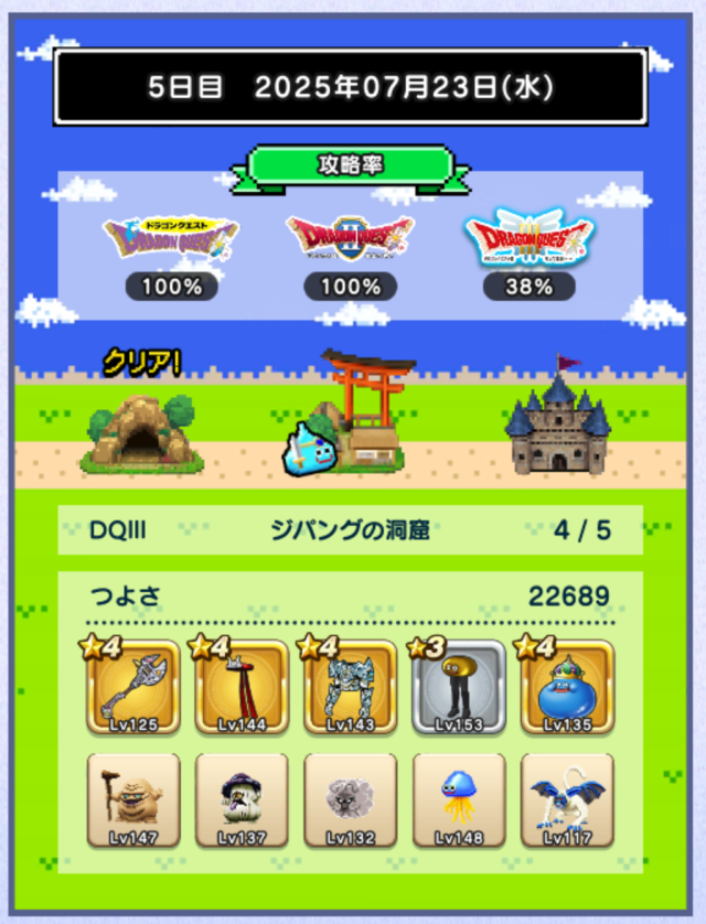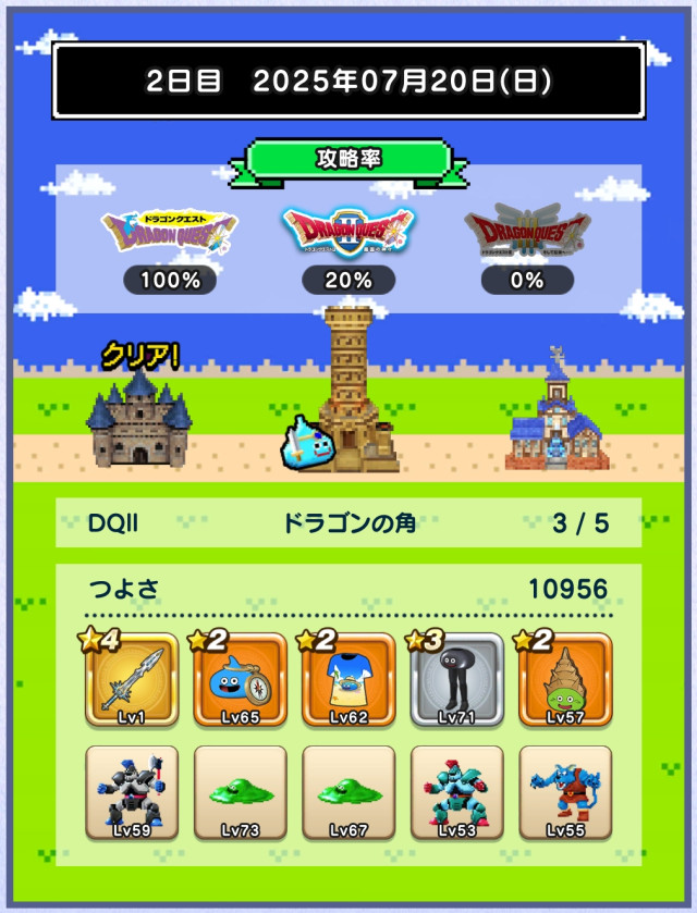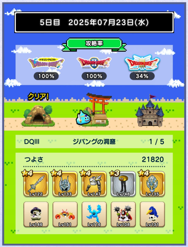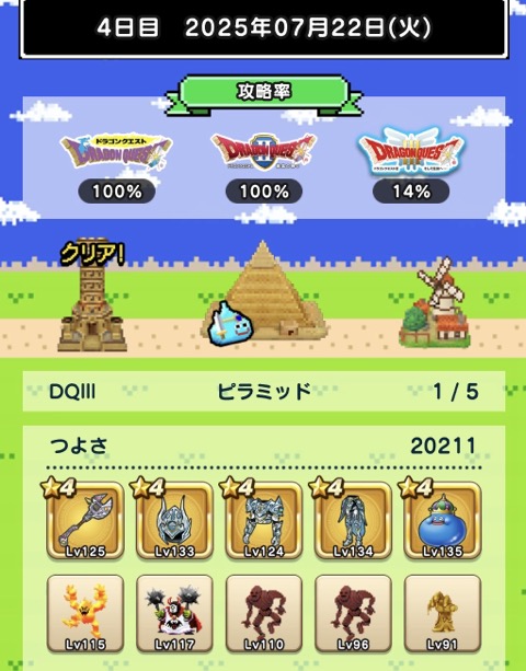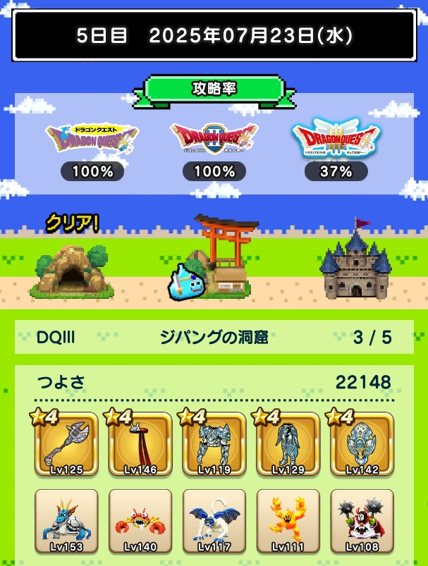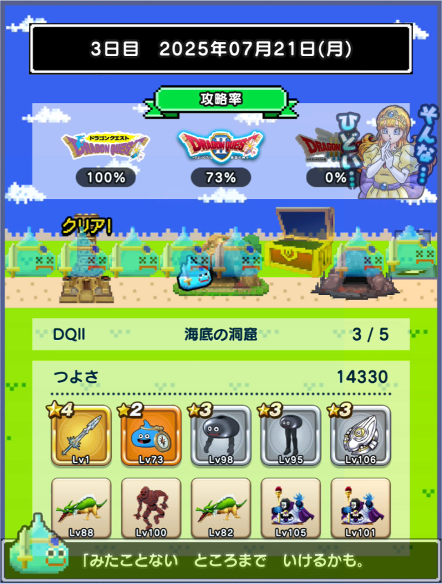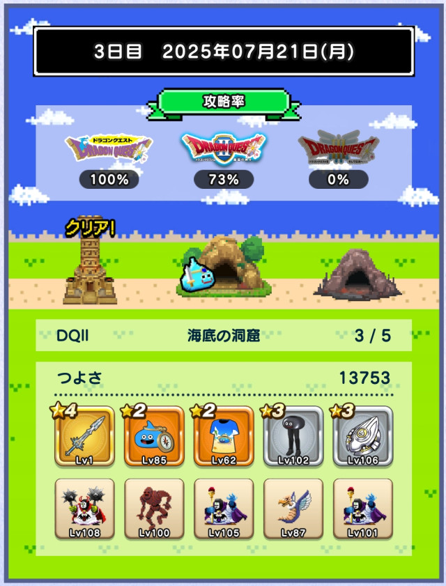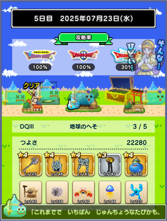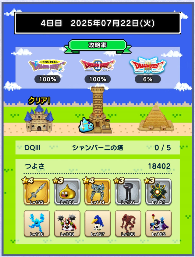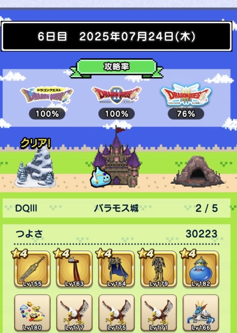 仲モン総入れ替え、順調だが、初の7日目クリアはどうなるか。