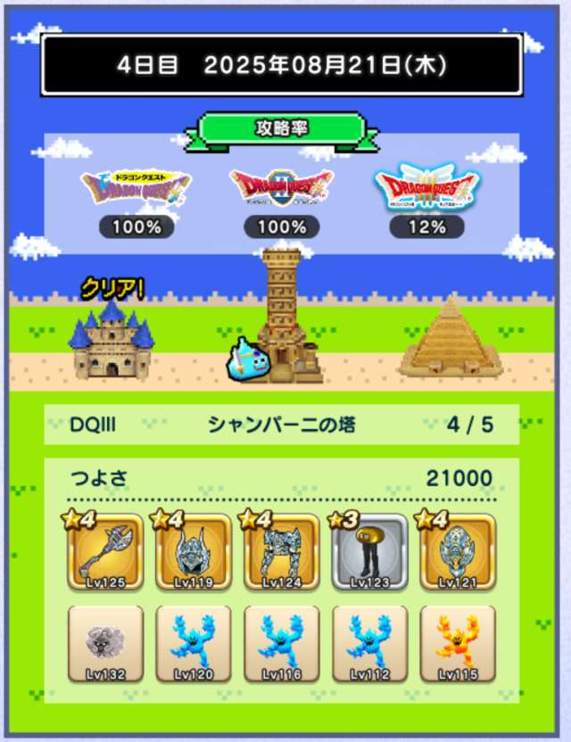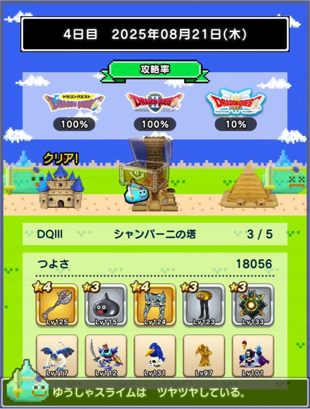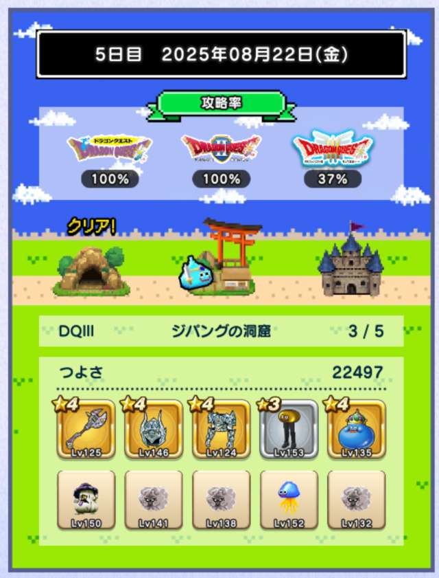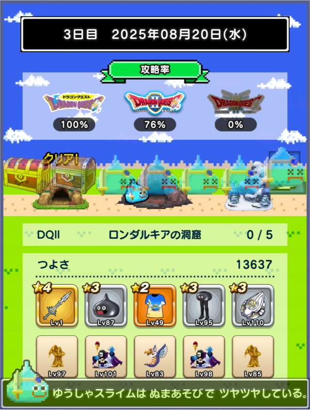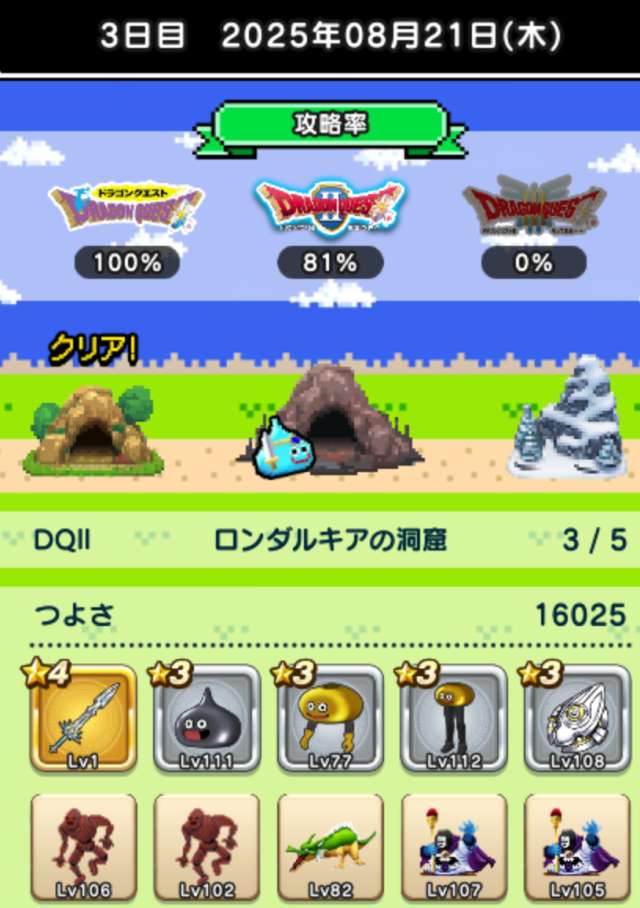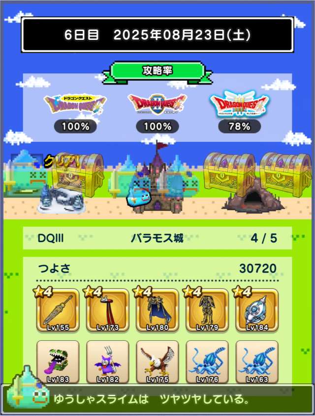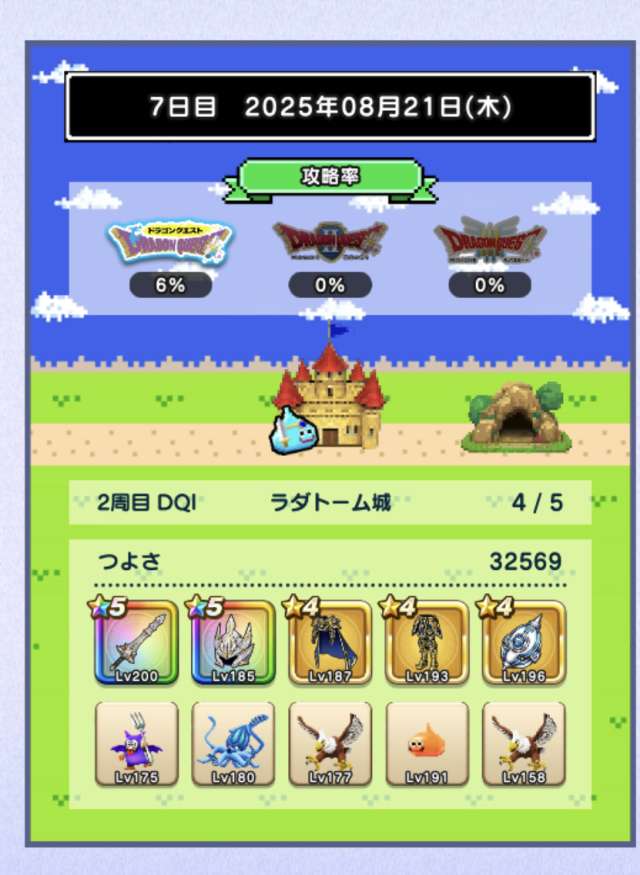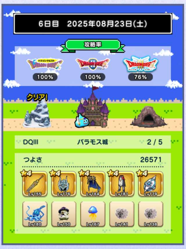 海底の洞窟以降、回避無し。そろそろ罠回避して欲しい。幸か不幸かバラモス城で石像に会う。今期はボストロールをワンパン。他の🌈中ボスより戦力揃い易いとすると、ワンパン難易度はトロル < 大蛇 < カンダタ?