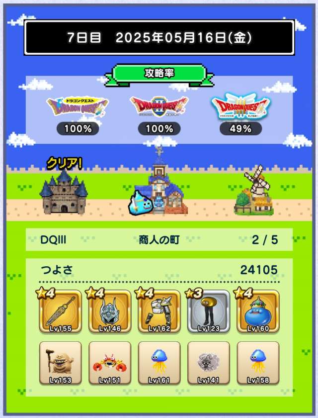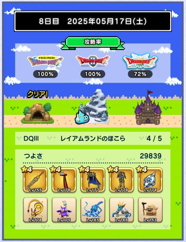 8日目 進捗+7、宝x2床。リカバリ40分。