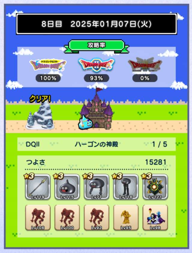 スライムつむりの盾はベニヤに色を塗ったような安物感満載の盾だったけどキンスラの盾はちょっと立体感あるよね、ぷにぷにしてるのかな…におうだちでぽよんと跳ね返す?