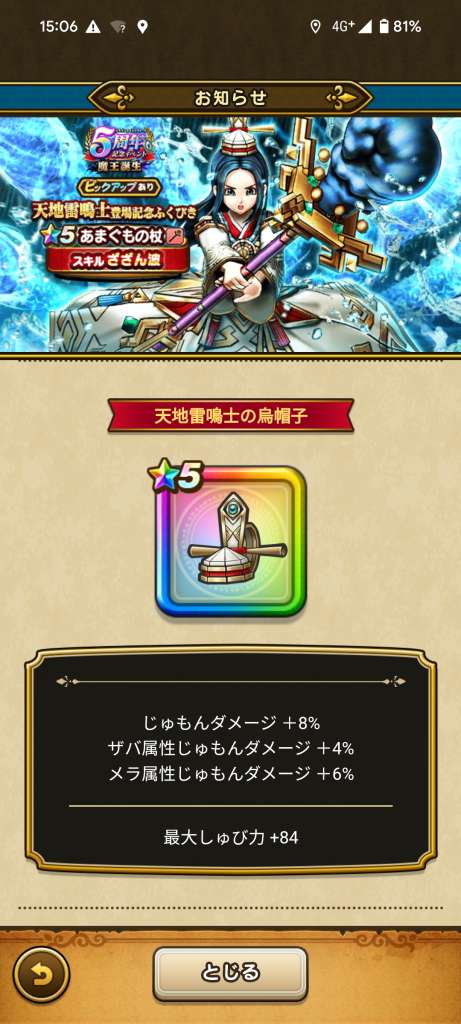 あああぁぁぁ。昨晩引き当てた烏帽子、たった今25まで強化しちゃったよ。