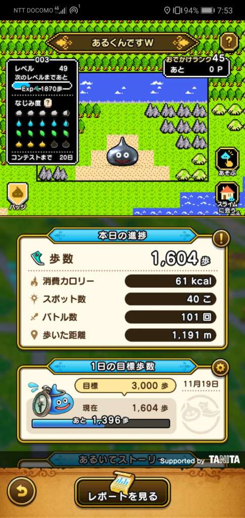 歩数の累計は174万歩 なので コスモ、ホイミン の分岐はこのデータだけだと関係なさそうです。