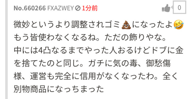 聞きたいのですが、こういうのってガチャに課金させて弱体化するの返金レベルだと思うんですが……