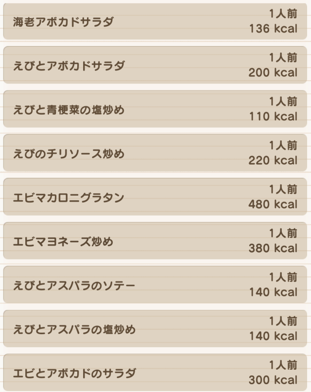 料理ごとの一般的なカロリーをざっくり計算してるが