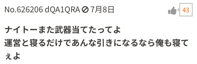 エスコンの件もありますし運営のお気に入りなのは分かってはいるんですけど、ガチャ期限ギリギリまで引っ張って最後にプレゼントしてあげたよって感じが露骨すぎてちょっと。