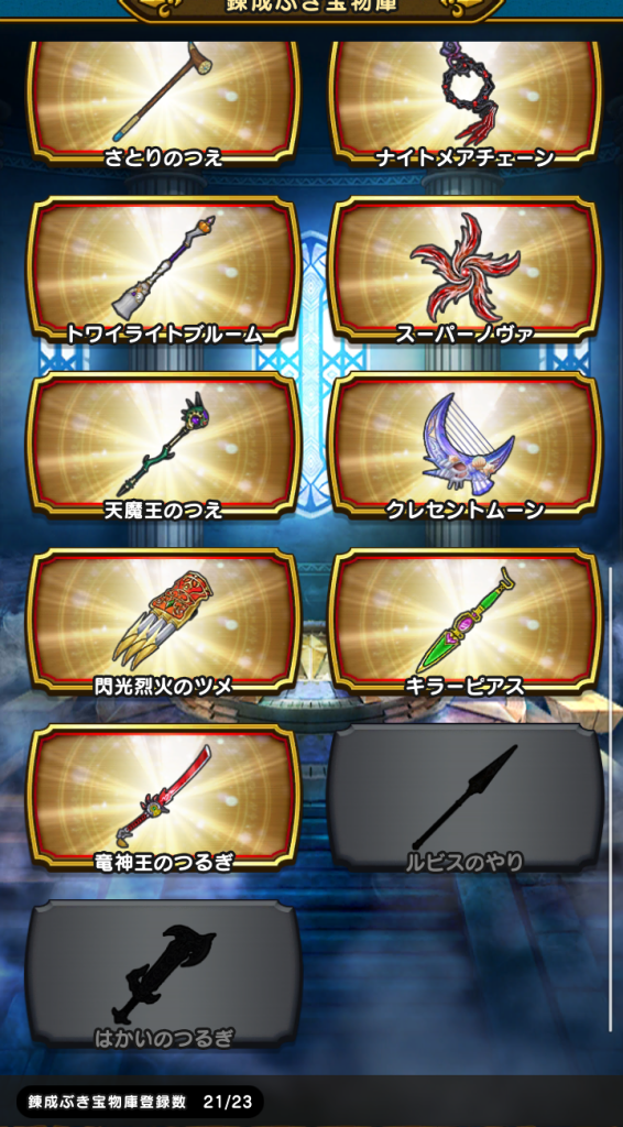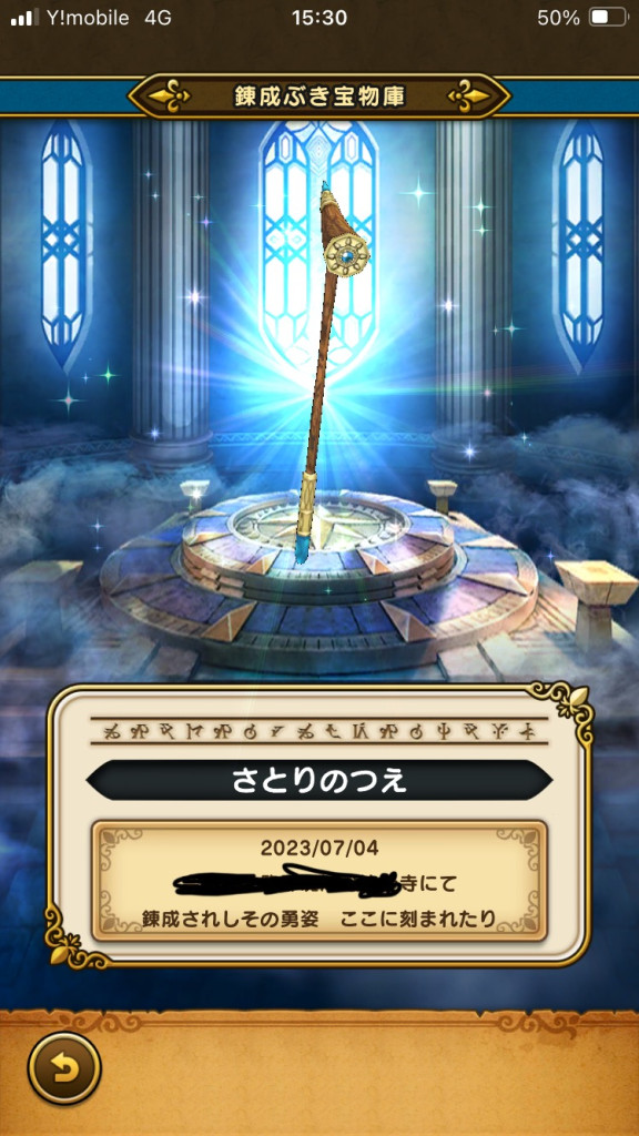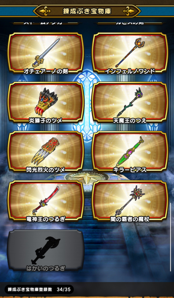 ちなみに、私は地名まではこだわってないけど、淡路島の洲本のDQ記念碑の前で錬成した。ロト剣とか王者剣は残念ながらその時は無理で、別の武器だけど。