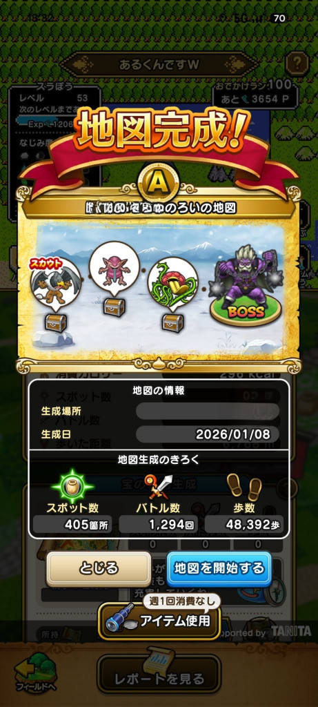 「表示切替」で生成までの三日間の歩数・スポット数・勝利数が見れますけど、S地図でもほとんど歩いてなかったりするのもあるから、これらの数字は乱数のタネにしか使われてないんでしょうね。