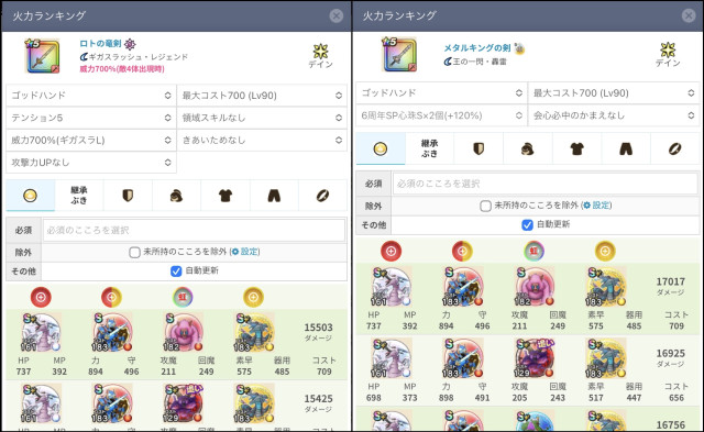 ルビスでゴッドレイジ確定のときにロト竜剣とメタキン(6周年心珠2個あり)とどれくらい差があるかわかる親切な人いますか。3万ジェムつぎ込んで竜剣2本目とるか悩む。