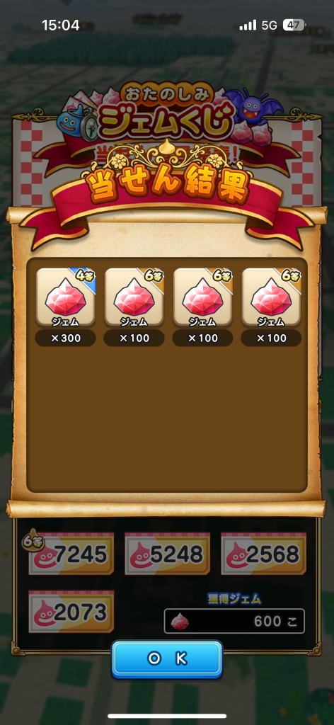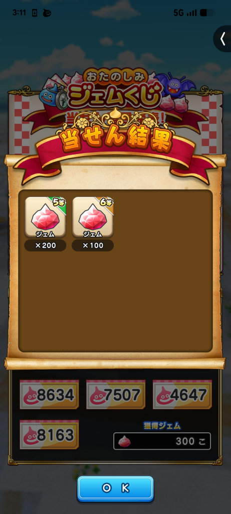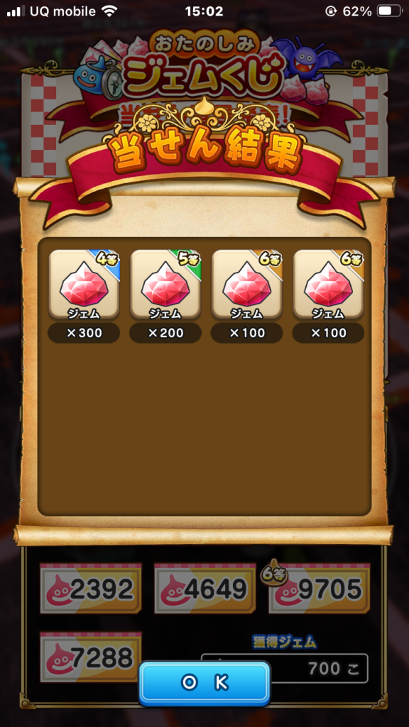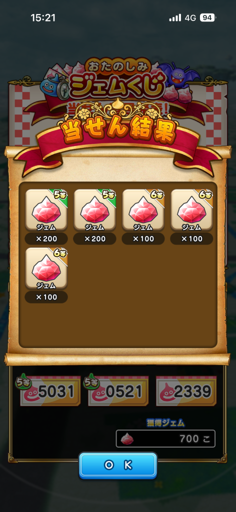6等が2つも当たったぜ!200ジェムももらえるとは太っ腹やな、運営!