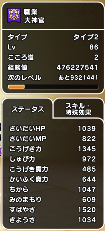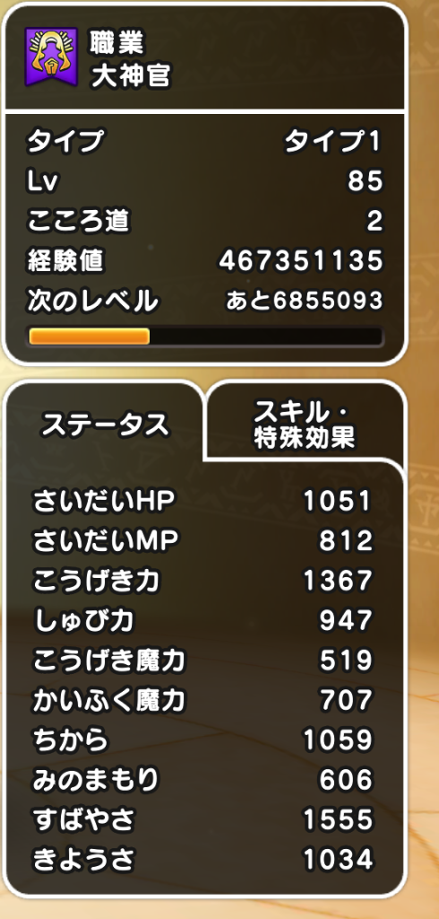 大神官Lv85基礎すばやさ161(Lv90は162)