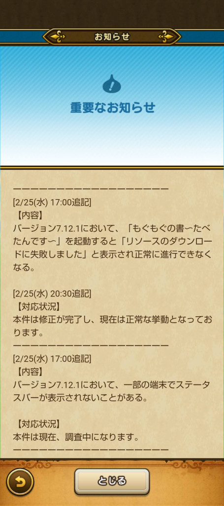 どうもゲーム内のお知らせと、ブラウザで見られるお知らせは同一じゃないみたいですね。