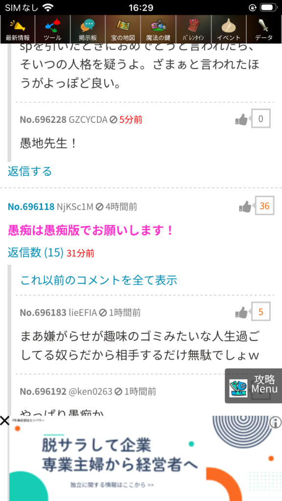いうて、公式なルールがあっても守らない人いるのに、いくらマナーですと言ったところで掲示板ではそれが守られることはない。