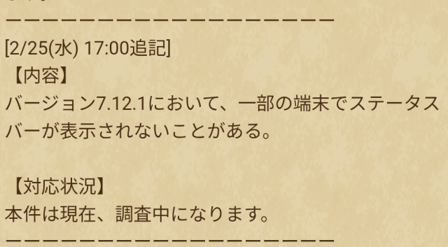 運営さん、ステータスバーの非表示の調査いつまでかかっているんですか?
