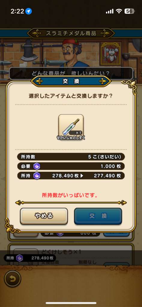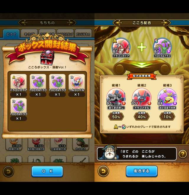 昼間ゴールデンスライムからDとBをもらって、もしかして揃ったかも!?とアップグレードしてったら、Aが1こ足らなかった。テンションの落差よ…。