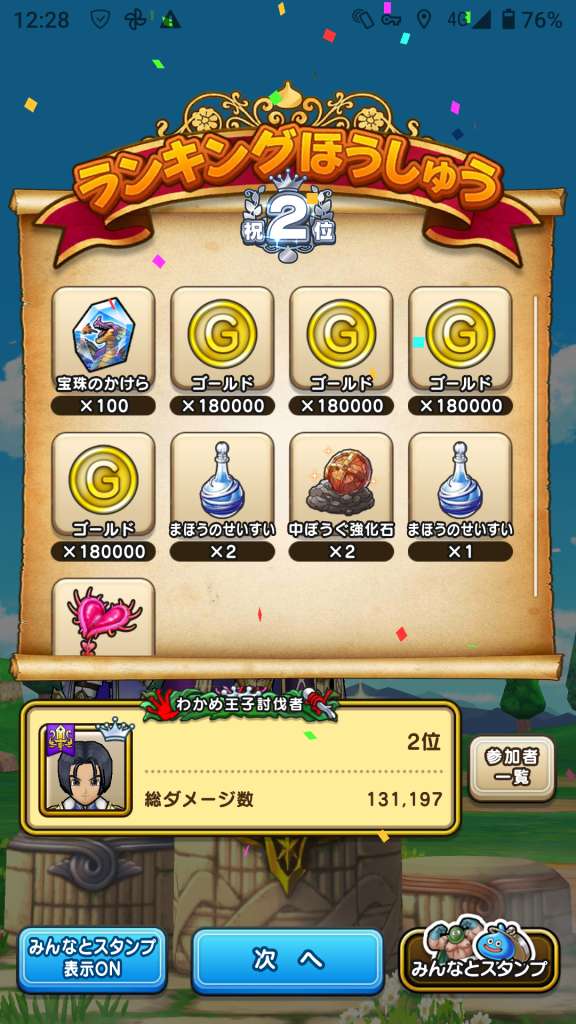 2位〜3位だと50とか100貰いやすいんですよね(*´ω`*)