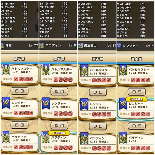 上級職の基礎ステータス一覧表
