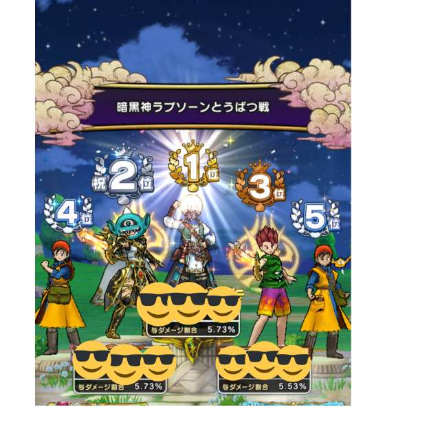 自分程度のノーマルプレイヤーは、縛り会心フォースブレイクにアタックチャンス2回で攻撃バフと全ての条件が揃ったら表彰台に乗れるくらいです。