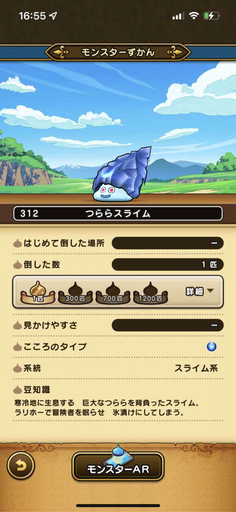 先程(2022年1月11日15時過ぎに)ストーリーの第11章9話をプレイしていたら、2021年のイベントモンスターである『つららスライム(添付画像)』が1回だけ出現しました。