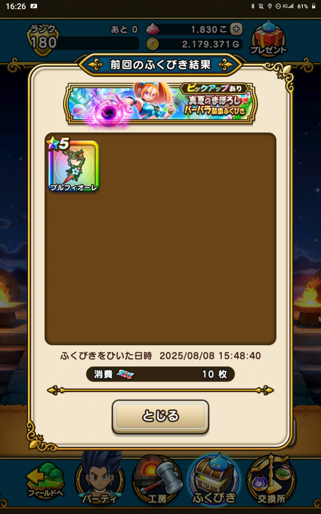 42戦合成 1直3最初Dラッシュで困ってたけど後半ポコポコ直ドロしてくれた。後は手形もったいないからクエスト8回やります。花火は30分か 1時間だけやります。仮眠取らないと