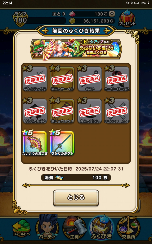 eXEさん、水着装備は見たけど名前まで見てなかった🤣少なくとも☆4でもいいからテンション武器の配布は必要だったと思う、武器持ってないとテンション下げられるだけって…スイッチだけじゃダメよね😞扇おめ🎉そんな中🤣🎰×2おめ🎉