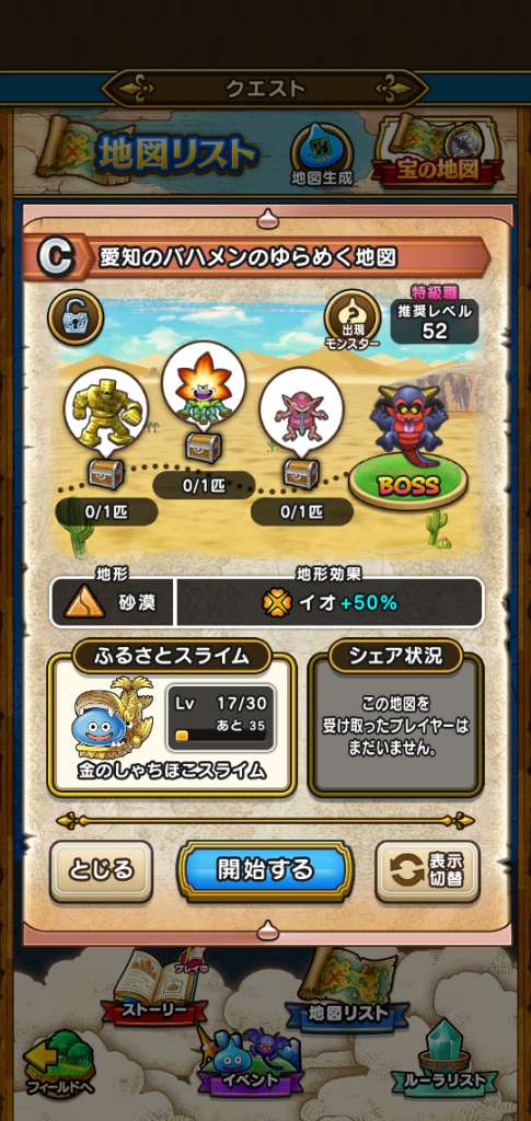 更新が来ましたが自分は新武器のガチャ券分だけピエトロとメガトンを狩ってまだハイドーラとパワード狩りしてます(^_^;)別スレにも書いたのですが、ハイドーラ同士とパワード同士の配合でそれぞれ50%で作れるキラパンとじんめんじゅを配合すると50%でうみぼうずが作れることに気付きまして。所持0だったので今のうちに4つ作ることにしました😁ただけっこうな確率で36%でできるじごくのよろいになるのがちょっちイヤんだったりします😹