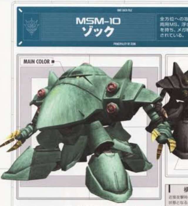 ゾックはガンダム戦記のデザインがよき。そっちでは頭はフォノンメーザーだったよ。