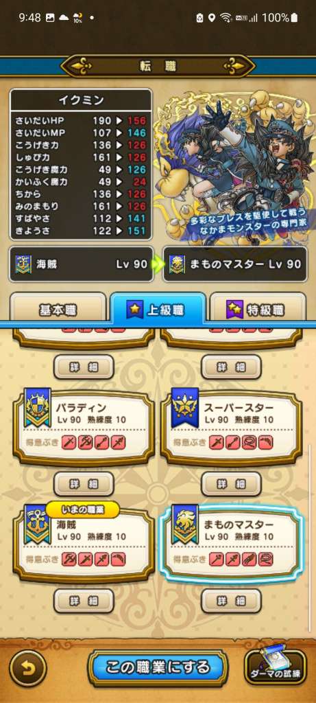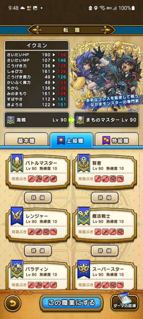 上級職の基礎ステータス一覧表