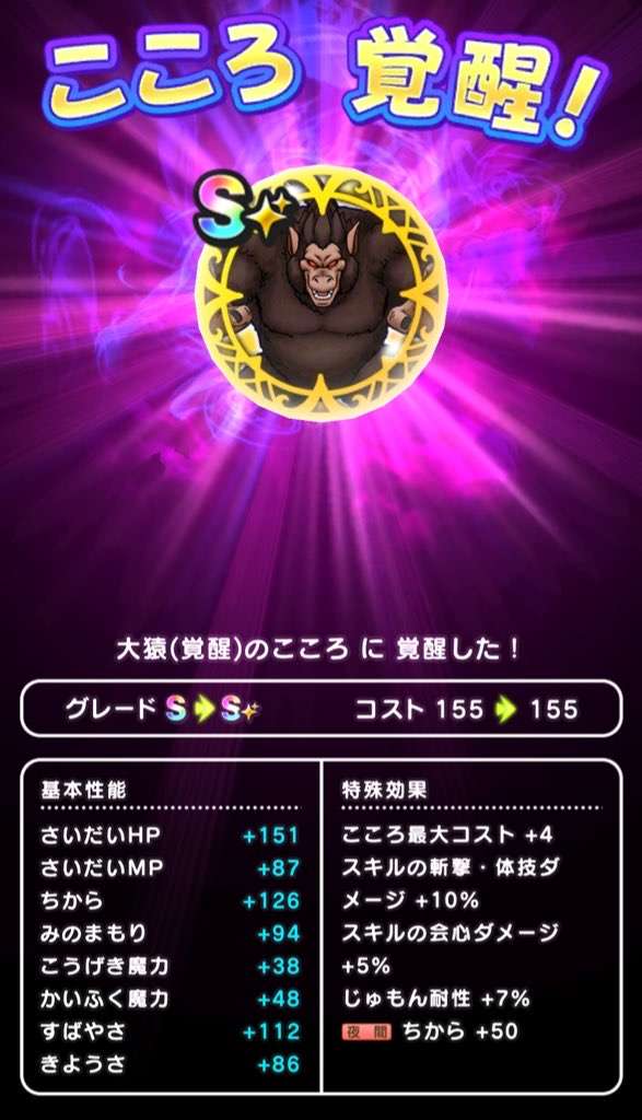 破壊の邪神シドー(覚醒)のこころSの性能と必要個数