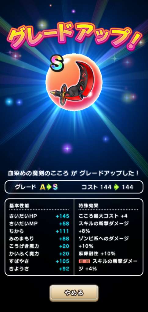 JYGGCCEさん、血塗れ魔剣S合成おめでとう㊗️!一個でも出来るとホッとするよね。