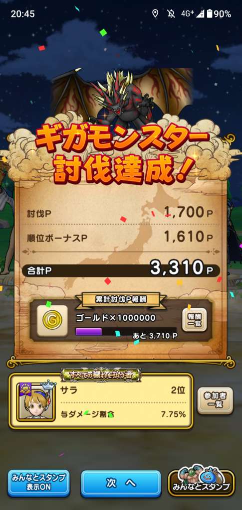 ギガモン、運任せの突然重課金兵がいると勝てません…!7%台後半で2位って…札束でビンタされている気持ちになるけど本来のソシャゲの姿なんだろうね😂
