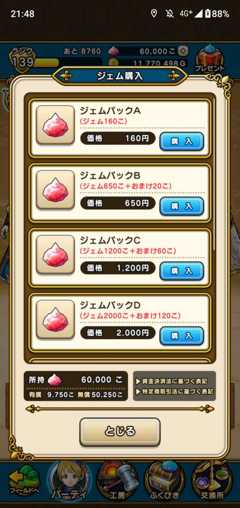 ジェムの入手方法