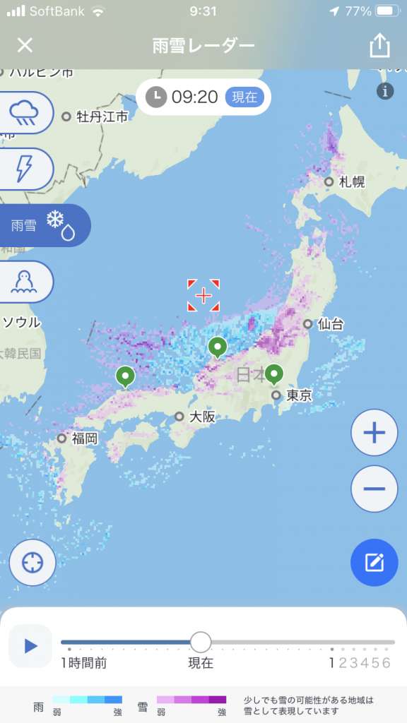 雨雪レーダー午前9時現在