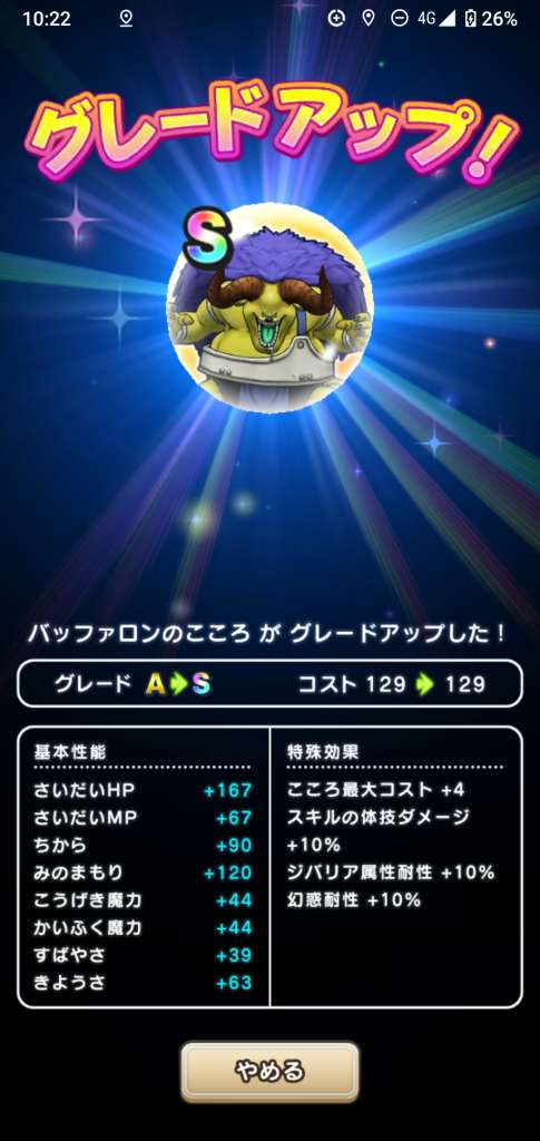じごくのヌエのこころSの性能と必要個数