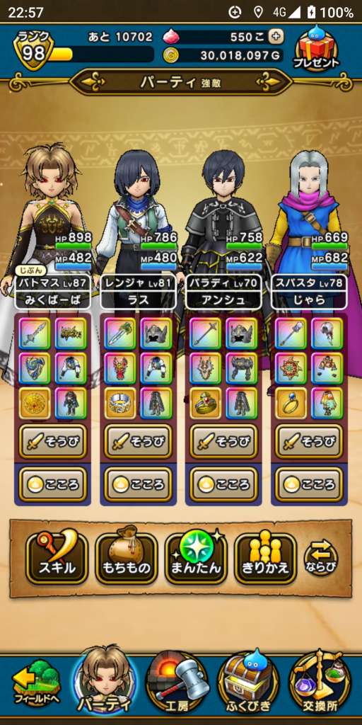 パラのハンマー1枚で行けるのか!?と思ったらスパに星降りなのね。アンコ使っても回復量的に間に合うのかな?自分はダンロとさと書でも全力で回復したターンが合ったので。ベギラゴンとかブレスがまとめて来ると痛い。