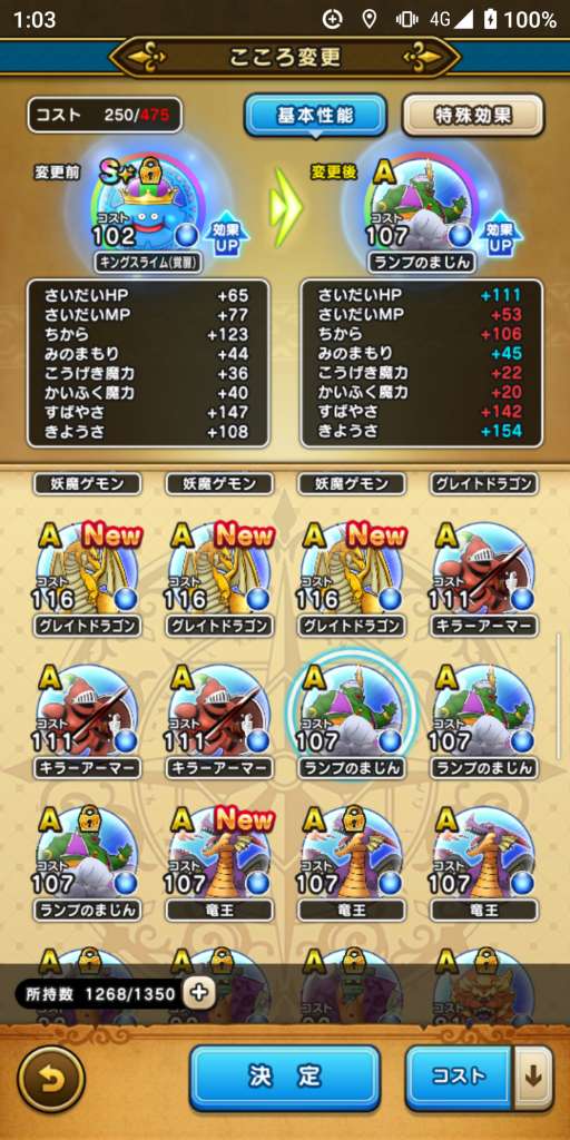 闇の覇者蒼き竜王(覚醒)のこころSの性能と必要個数