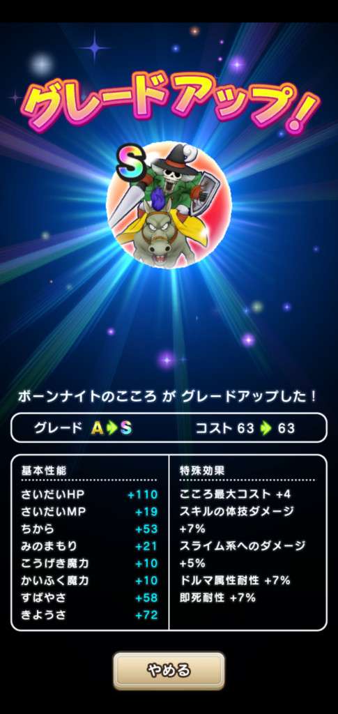 リュウちゃん(覚醒・白)のこころSの性能と必要個数