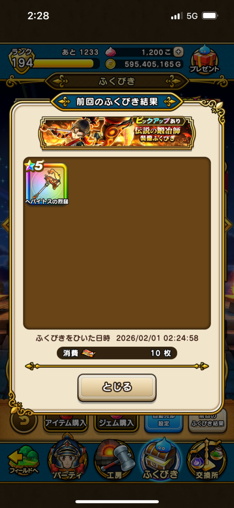 ヘパイトス入手!!マイレージが溢れそうで竜剣と迷ったんだけどなんとなくヘパイトス引かないといけないって気がして直感に従ってみたら大正解でした😆