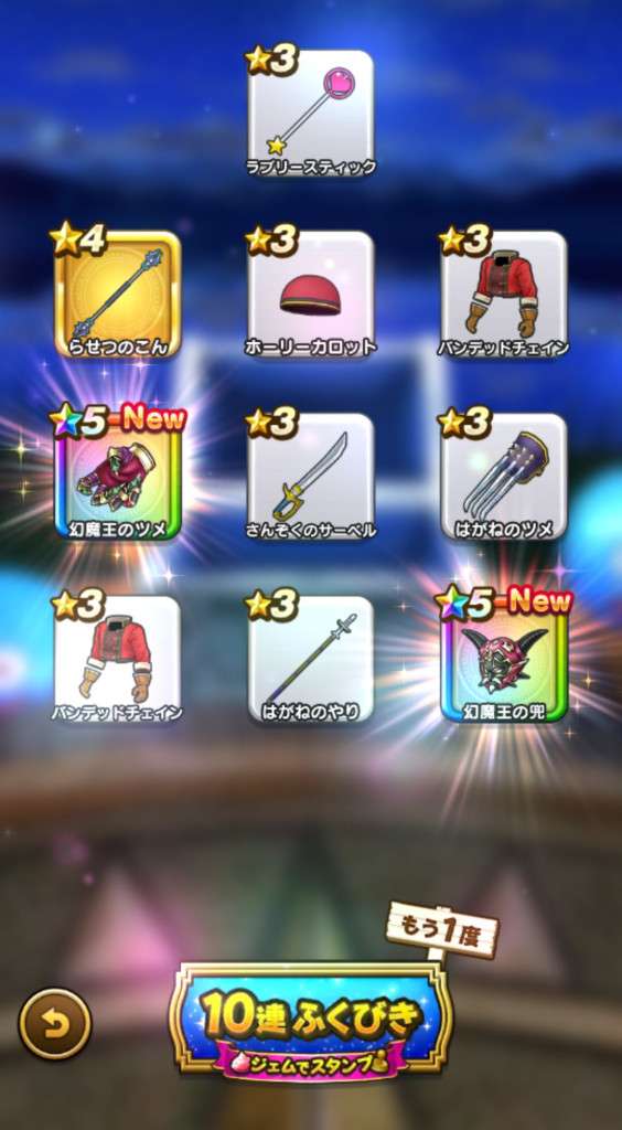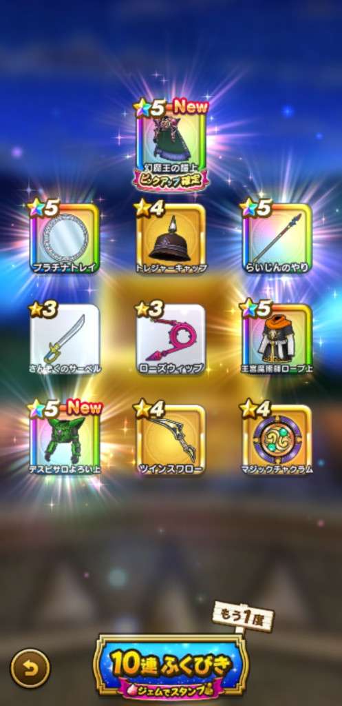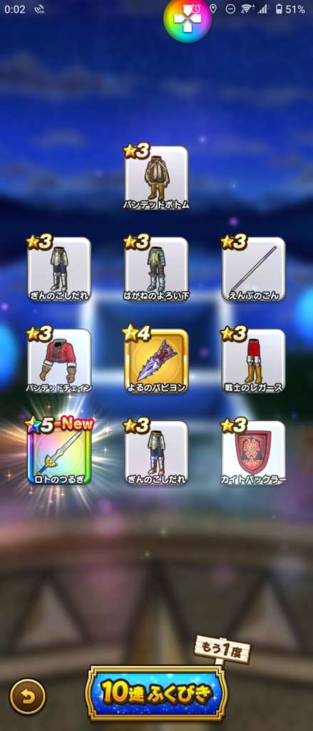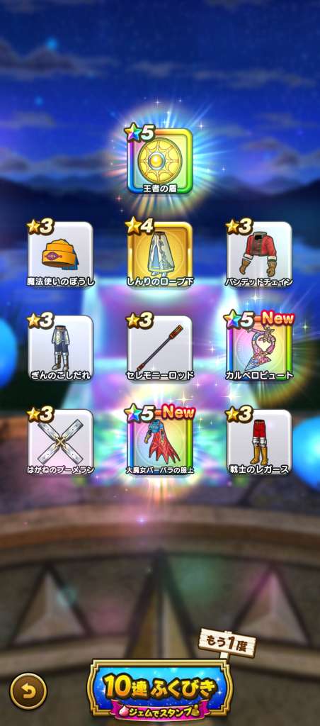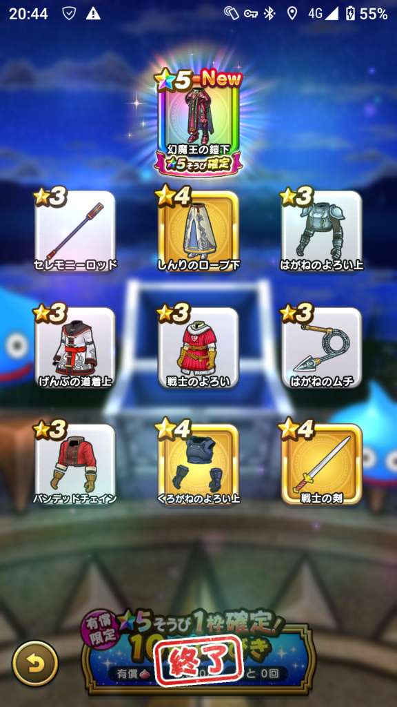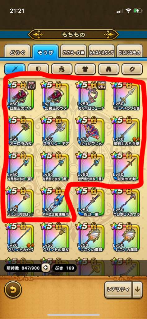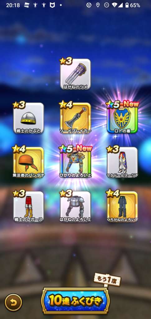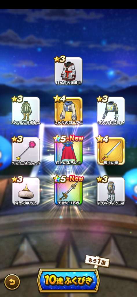 まあ武器引いても今更だけど王者装備はゾーマ覚醒が来たときに使えそうだから有りよね。ロトはお察し(´-`)