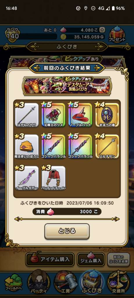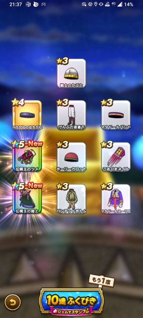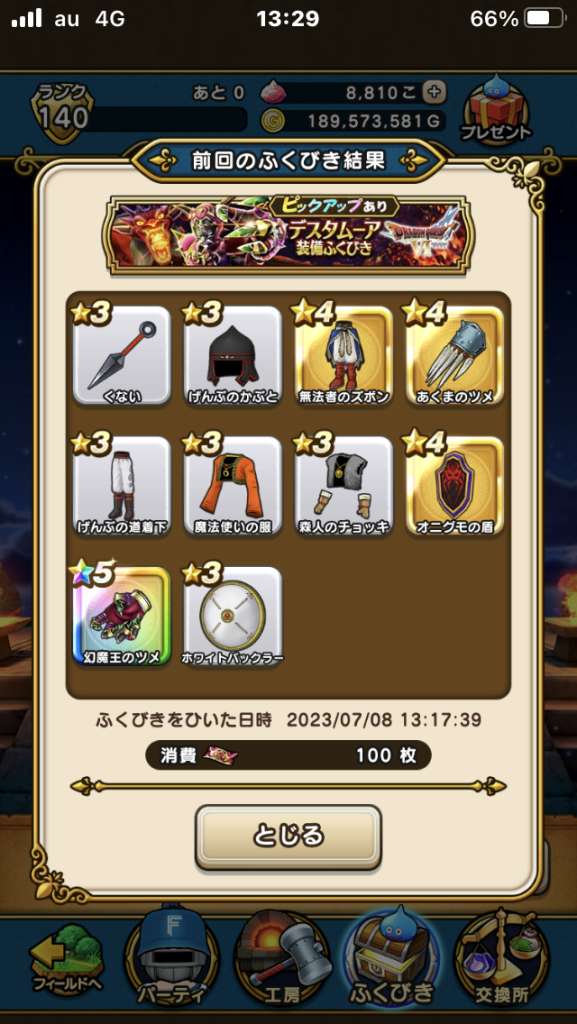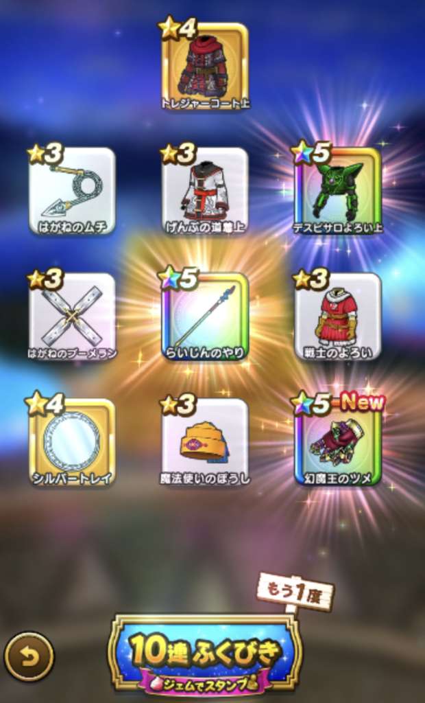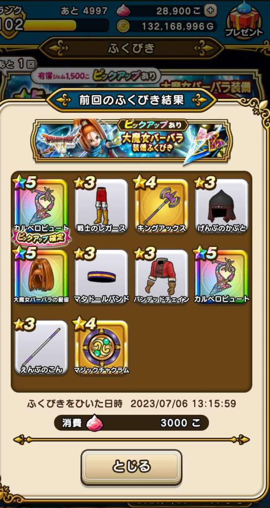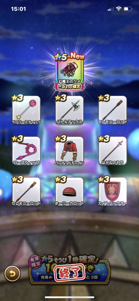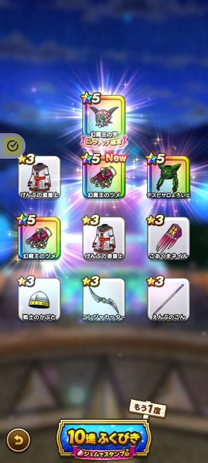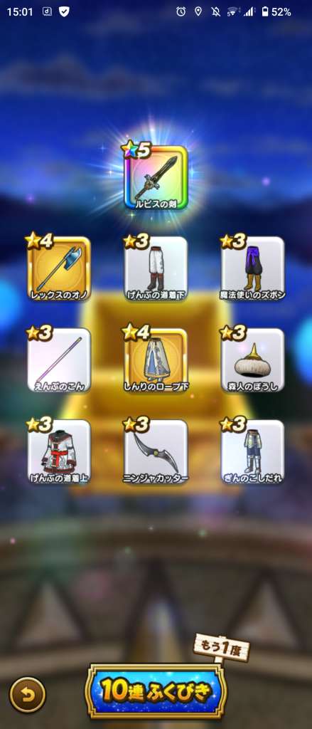 まあ武器引いても今更だけど王者装備はゾーマ覚醒が来たときに使えそうだから有りよね。ロトはお察し(´-`)